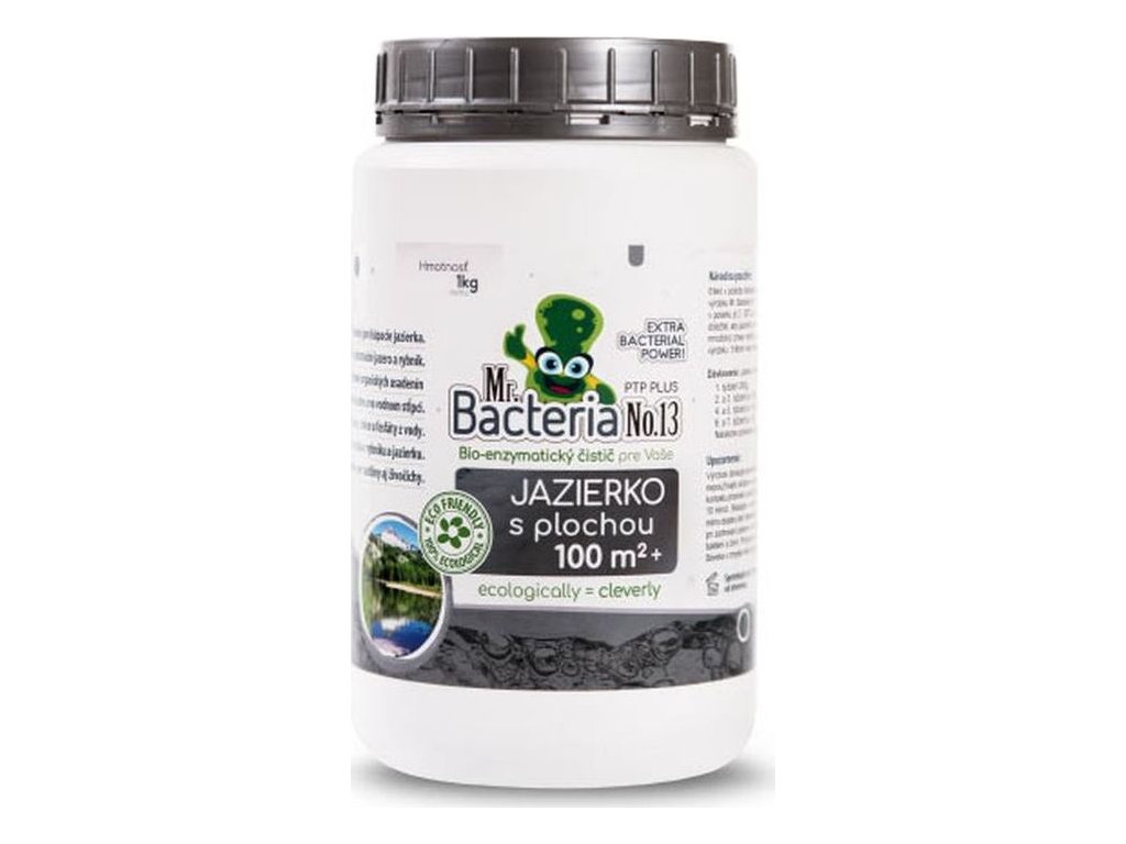 Přípravek Mr. Bacteria No. 13 je směs bakteriálních spór, enzymů a živin nutných pro činnost mikroorganismů. Účelem používání přípravku Mr. Bacteria No. 13 je odstranění organického bahna, sinic a zvýšení obsahu kyslíku ve vodním sloupci Vašeho rybníku nebo jezera. Působením přípravku v jezeře a rybníku je rozklad a odstranění organických usazenin a organického bahna na dně i ve vodním sloupci jezírka nebo rybníku, pomocí vysoce mobilních přírodních nemodifikovaných aerobních bakterií a fakultativních anaerobních bakterií s pozitivní chemotaxou ( němu). Zároveň dochází k výraznému snížení fosforu a chlorofylu A, který je měřítkem koncentrace řas (likviduje látky podporující růst řas a tvorbu sinic), fosfátů a zakalení ve vodním sloupci. Odstranění fosfátů má za následek odstranění sinic a dochází ke zvýšení obsahu kyslíku ve vodě. Při pravidelném používání přípravku Mr. Bacteria No. 13 dochází k reprodukci bakterií, což má za následek nepřetržité čištění jezer a rybníků. Dochází k odstranění organického bahna a není zapotřebí drahé vybagrování a odvoz bahna na skládku ze dna rybníka.