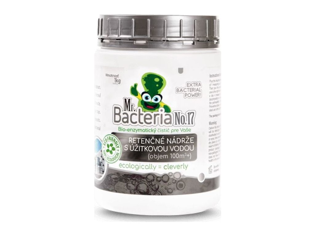 Při zachycování dešťové vody ze střech do akumulačních nádrží se do nádrží kromě vody dostává i organický odpad ze střech, který se následně začne rozkládat a nepříjemně zapáchá. Podobné problémy se vyskytují i při používání vody ze studny. Jedná se o stojatou vodu, kde mohou probíhat hnilobné procesy. Výrobek Mr. Bacteria No. 17 obsahuje pouze volně se v přírodě vyskytující bakterie a enzymy, které nastartují biologické procesy, organický materiál velmi rychle rozloží a zcela eliminuje vznikající zápach.