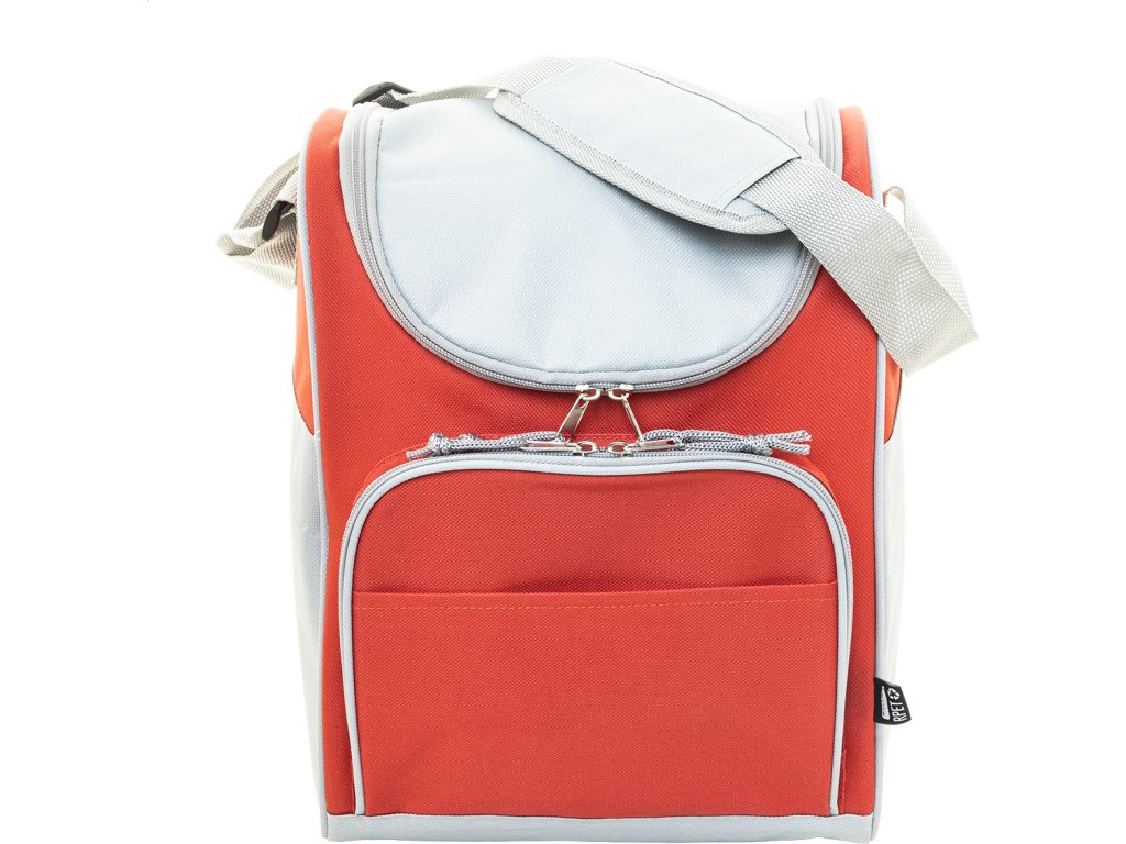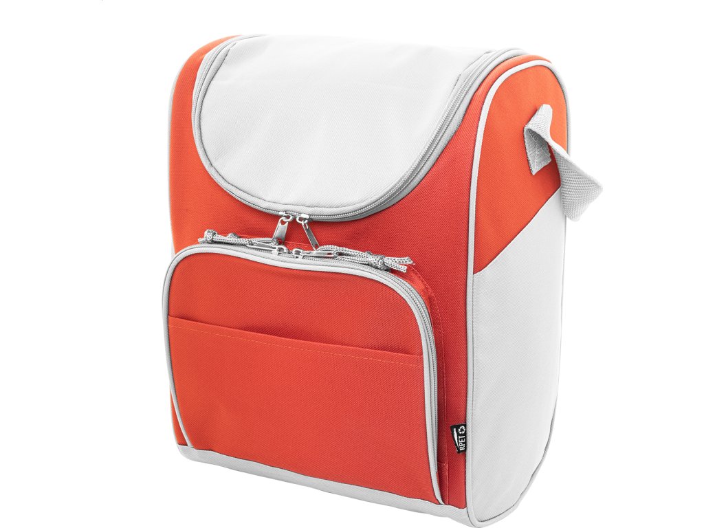 Chladicí taška RPET s hliníkovým polstrováním. Se 2 přihrádkami na zip, malou přední kapsou a nastavitelným ramenním popruhem. 600D RPET polyester s výrazným štítkem RPET.