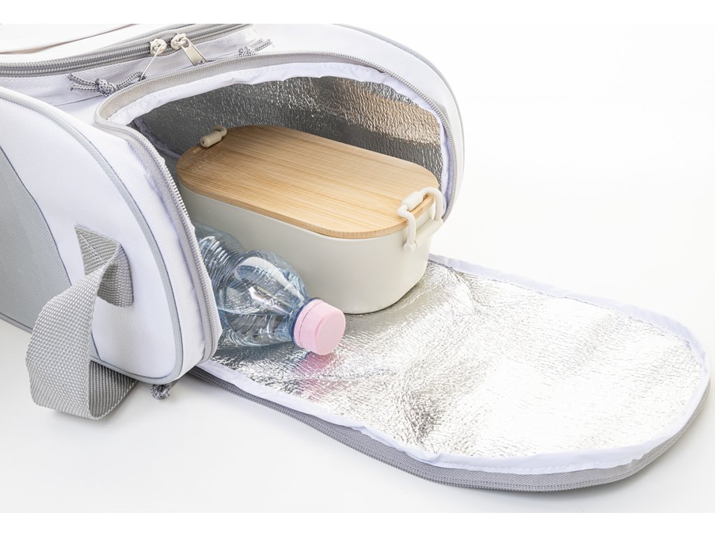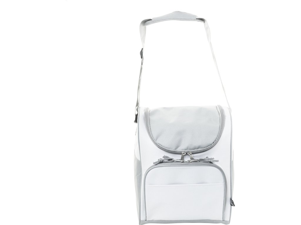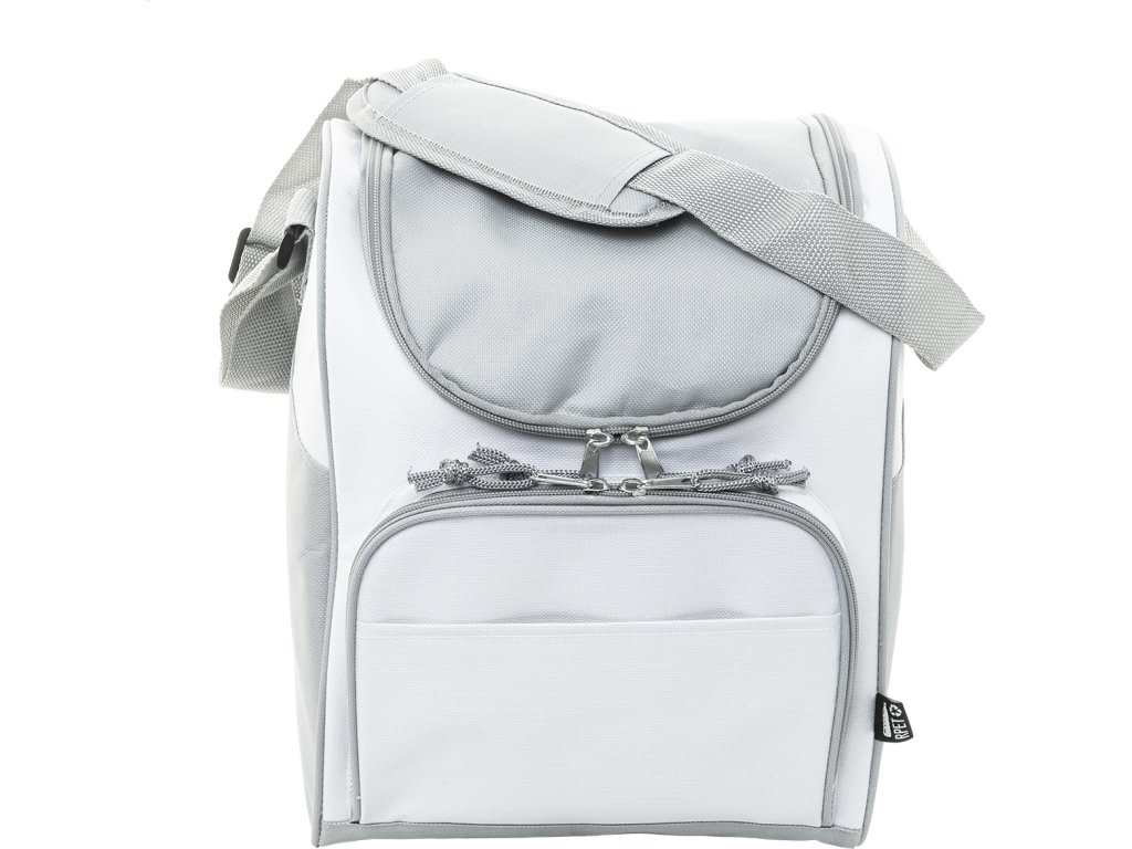 Chladicí taška RPET s hliníkovým polstrováním. Se 2 přihrádkami na zip, malou přední kapsou a nastavitelným ramenním popruhem. 600D RPET polyester s výrazným štítkem RPET.