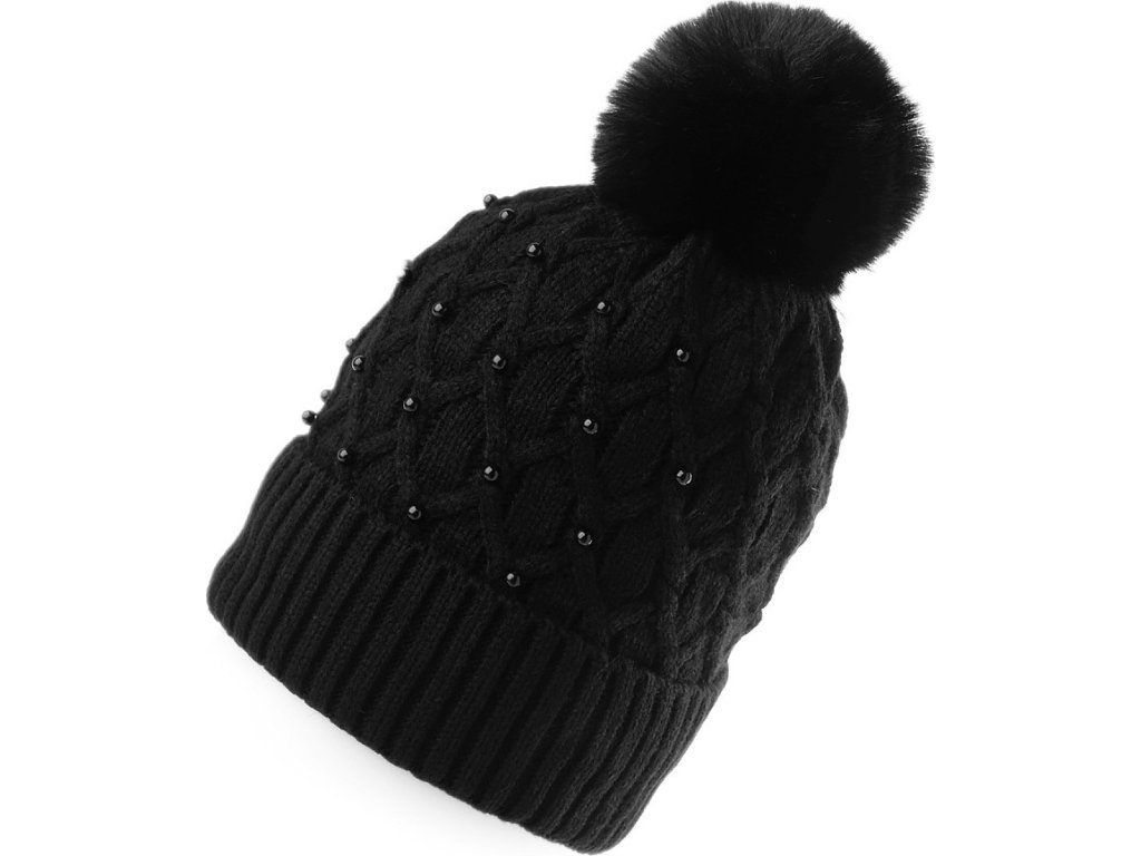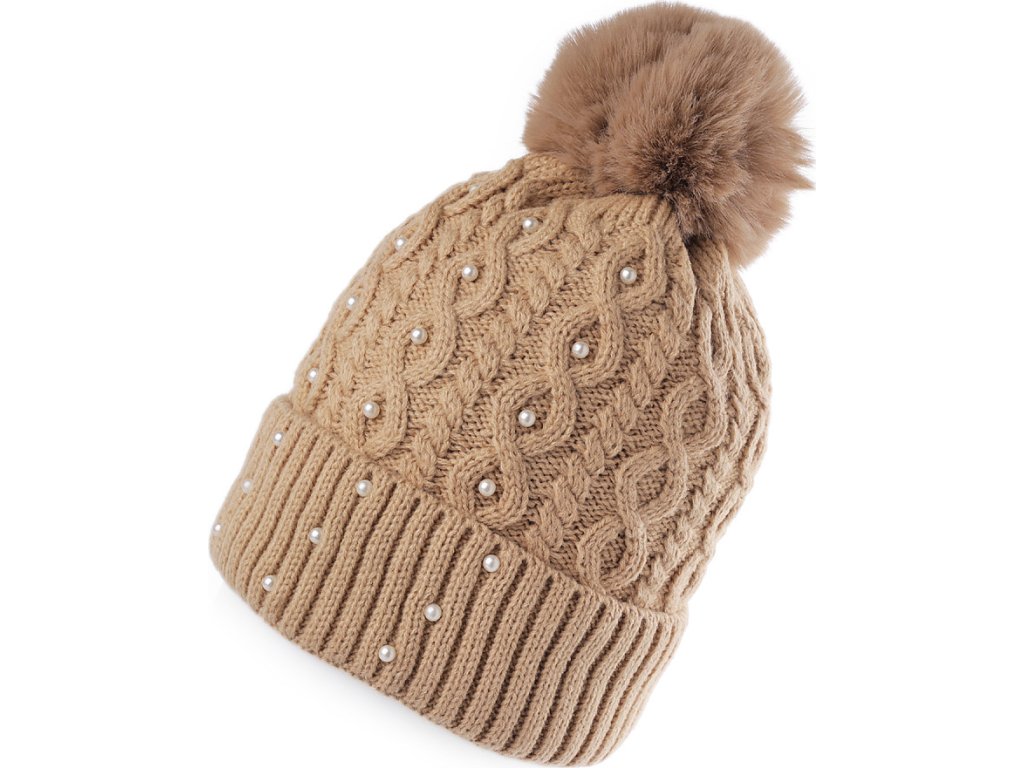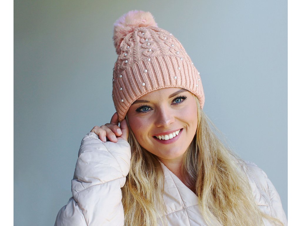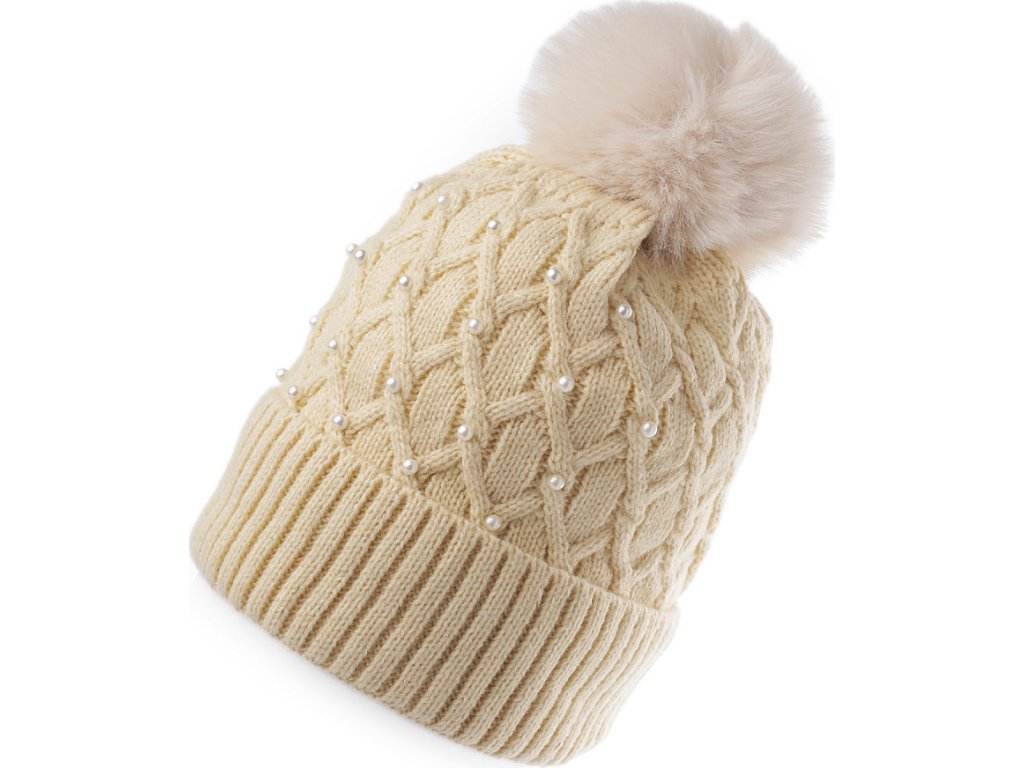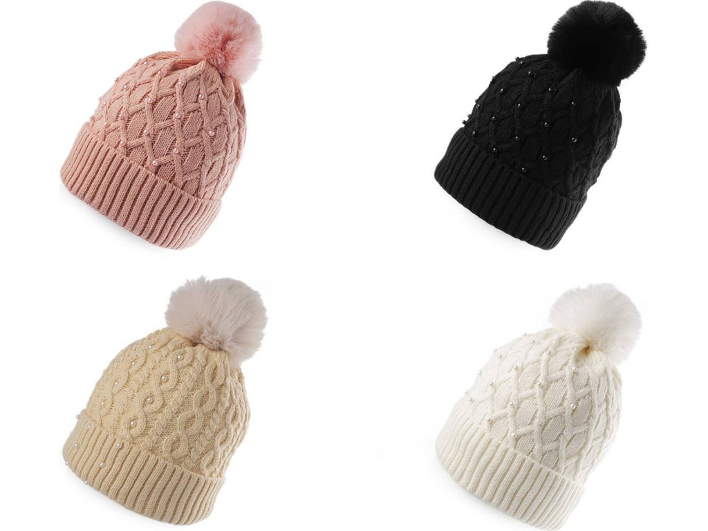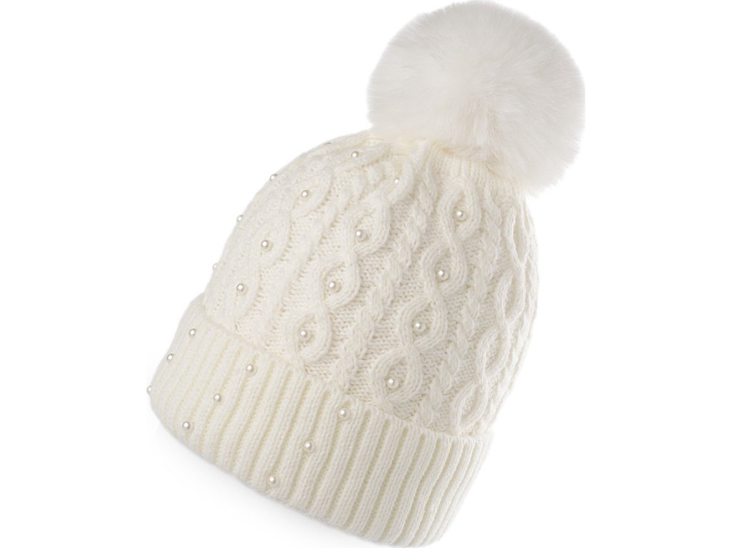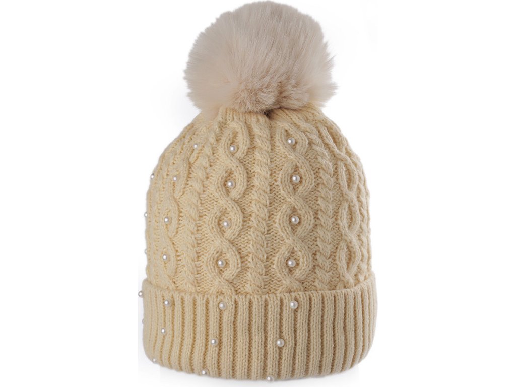Dámská / dívčí zimní čepice s bambulí a perlami Emi Ross
