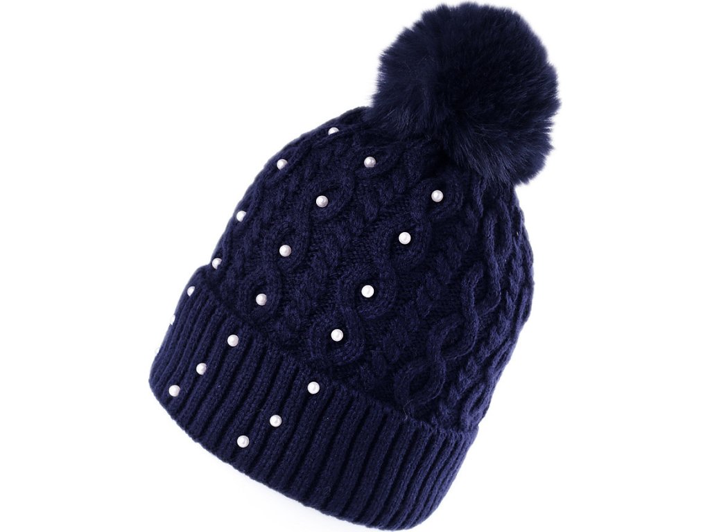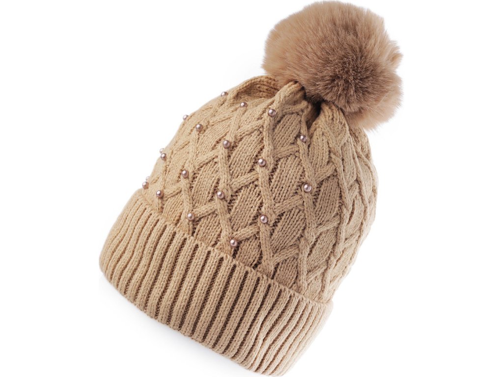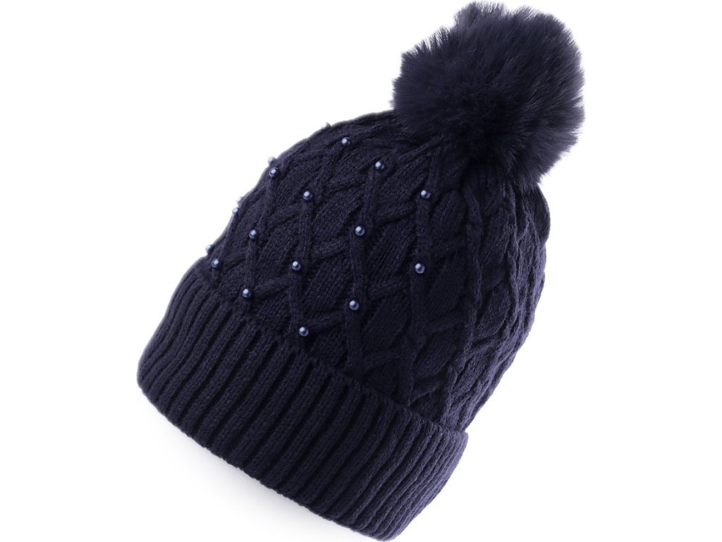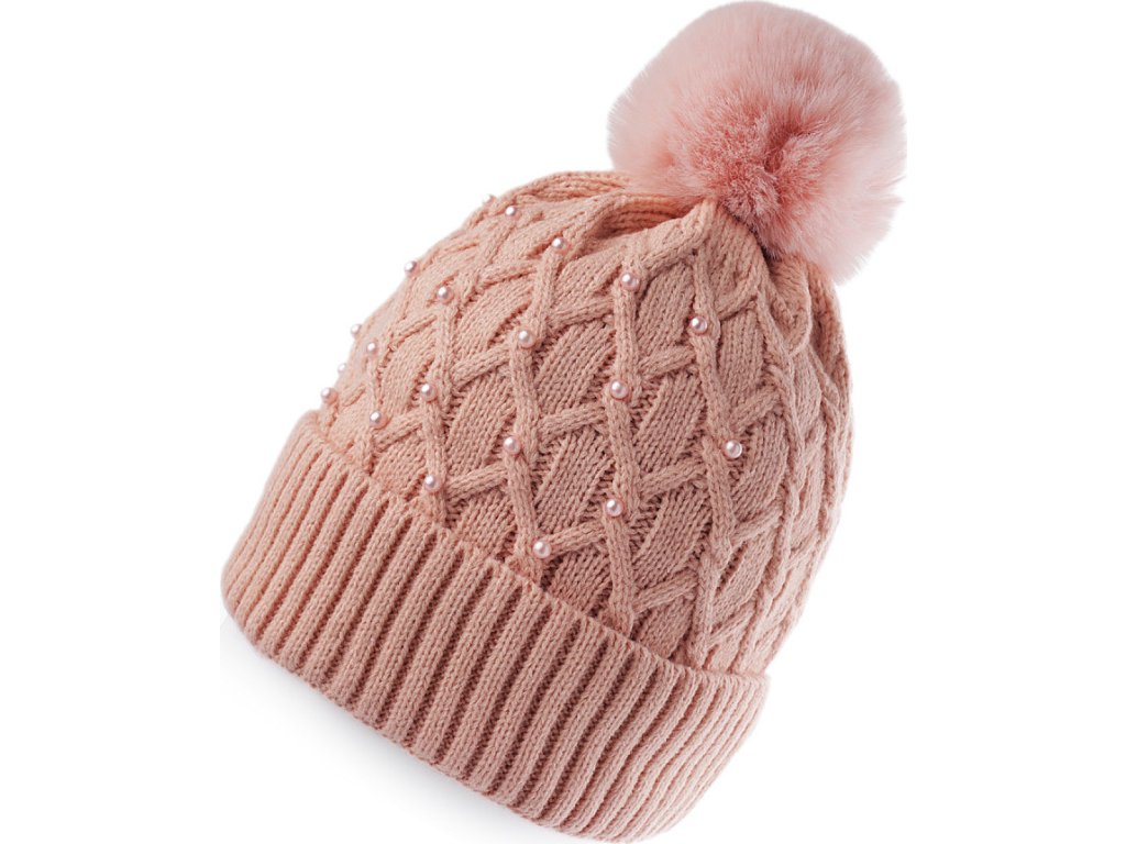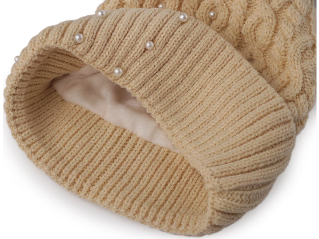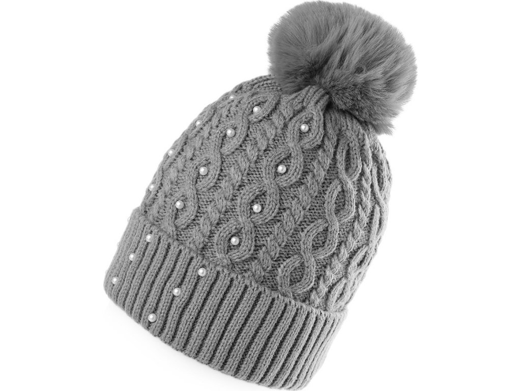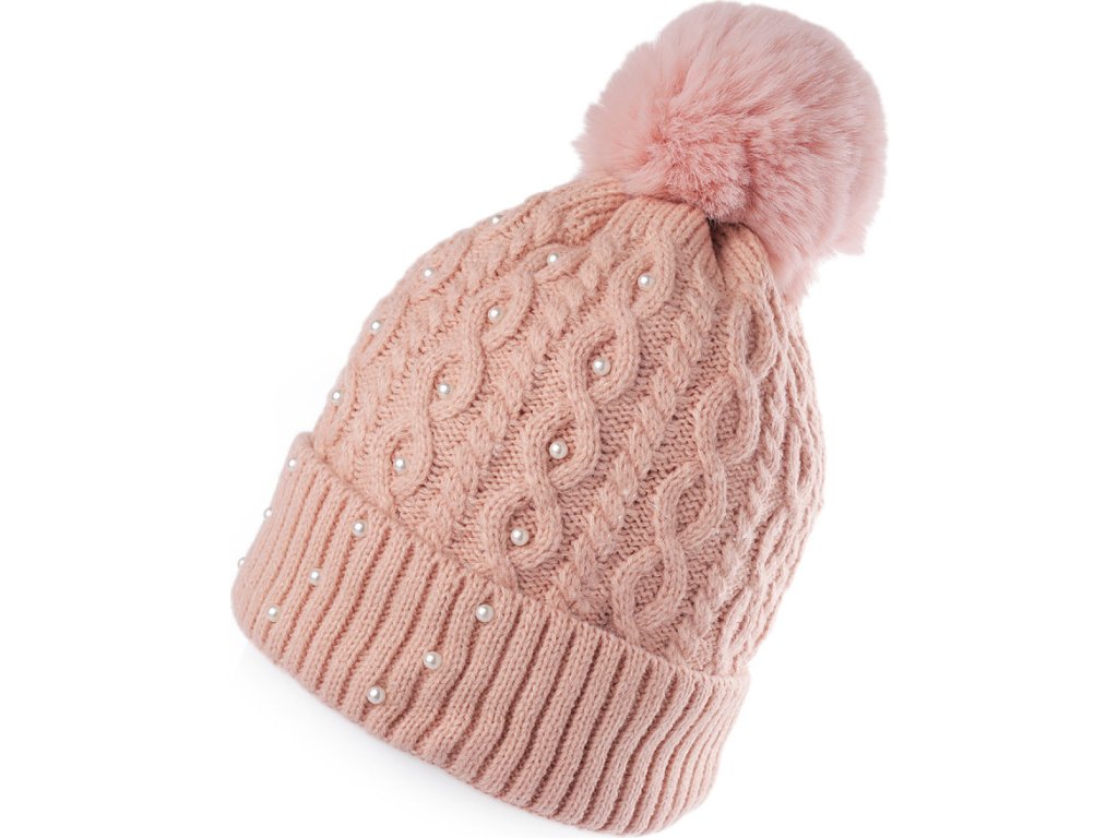Dámská / dívčí zimní čepice s bambulí a perlami Emi Ross
