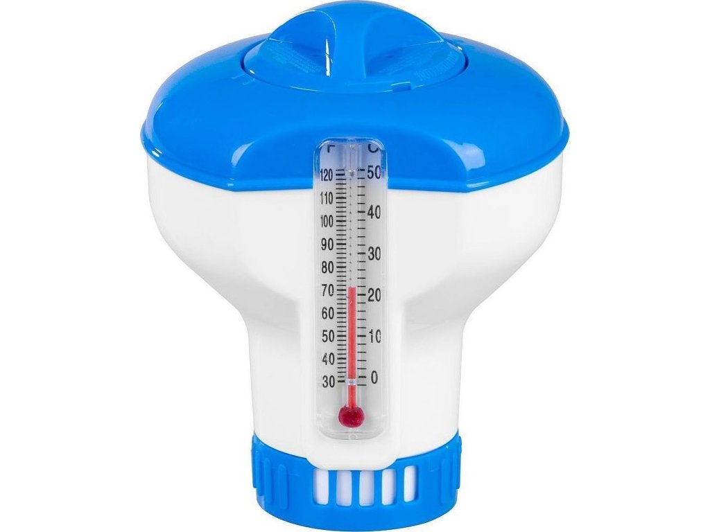 DávkovačStrend Pro Pools teplomerom je praktický a spoľahlivý pomocník naudržiavanie čisteja hygienickej vody vo vašom bazéne. Je určený na postupné uvoľňovanie chlórových alebo multifunkčných tabliet s priemerom 1,5".Zabudovaný teplomerumožňujejednoduché sledovanieteploty vody v stupňoch Celzia aj Fahrenheita. Plávajúci dizajn zabezpečujerovnomerné rozloženie chemikáliív bazéne, čím sa predchádza tvorbe rias a baktérií. Vyrobený zkvalitného a odolného plastu, ktorý odoláva bazénovej chémii a UV žiareniu. Ideálne riešenie na efektívnu údržbu bazéna.