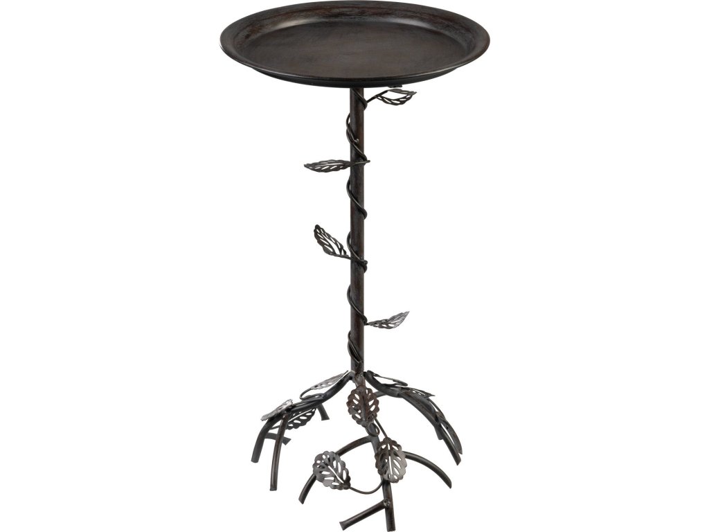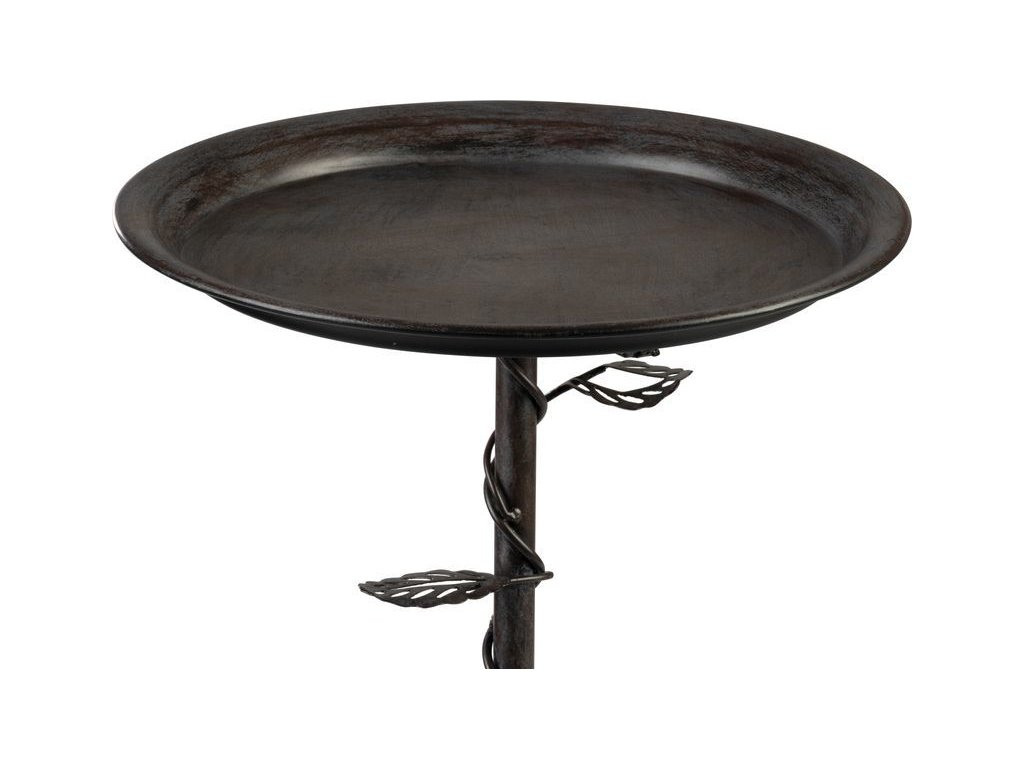 Vyrobeno z odolného kovu s antickým tmavým povrchem , krmítko se vyznačuje stabilní konstrukcí a dekorativními prvky v podobě kovových listů, které obepínají středový sloupek . Pevný podstavec s jemně zakřivenými nožičkami zajišťuje dobrou stabilitu i při větrném počasí.