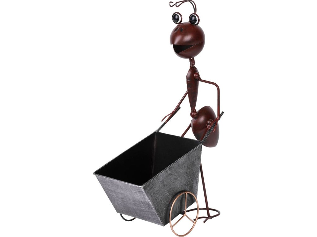 Dekorace MagicHome Mecco 4212, Mravenec s vozíkem, 46 cm, plech