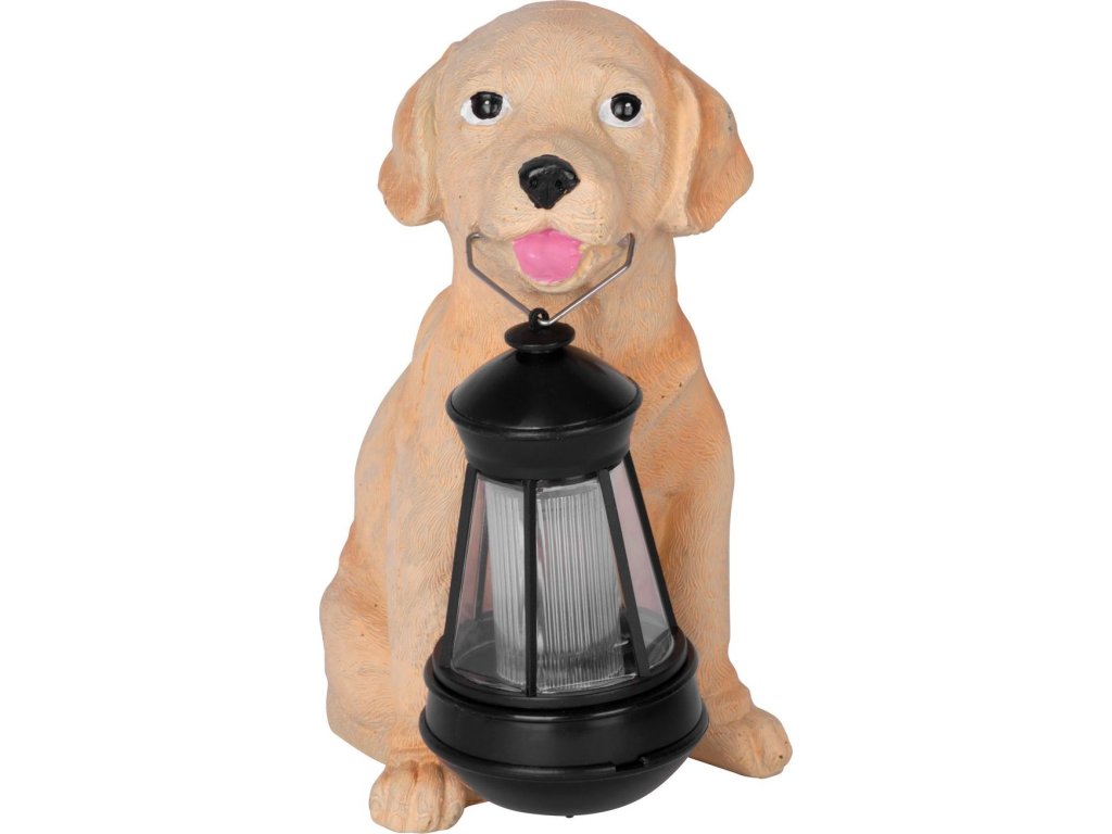 Dekorace Strend Pro Gecco, bílé štěně, 24x14x25 cm, polyresin, solar, 1 LED, AA