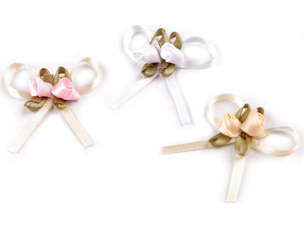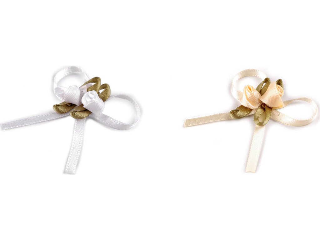 Mašlička s růžičkami je velice oblíbená, slouží především k ozdobení klopy svatebčanů. Mašlička je ze saténové stužky, je ozdobená párem růžiček. Mašličky můžete použít také k aranžování různých svatebních dekorací, k ozdobení svatebních oznámení, pozvánek, krabiček apod. Vyniknou i na módních doplňcích jako jsou klobouky, čelenky, kabelky, boty apod. Mašličky nemají špendlík k připíchnutí.