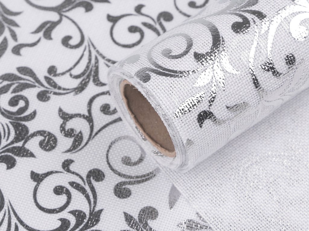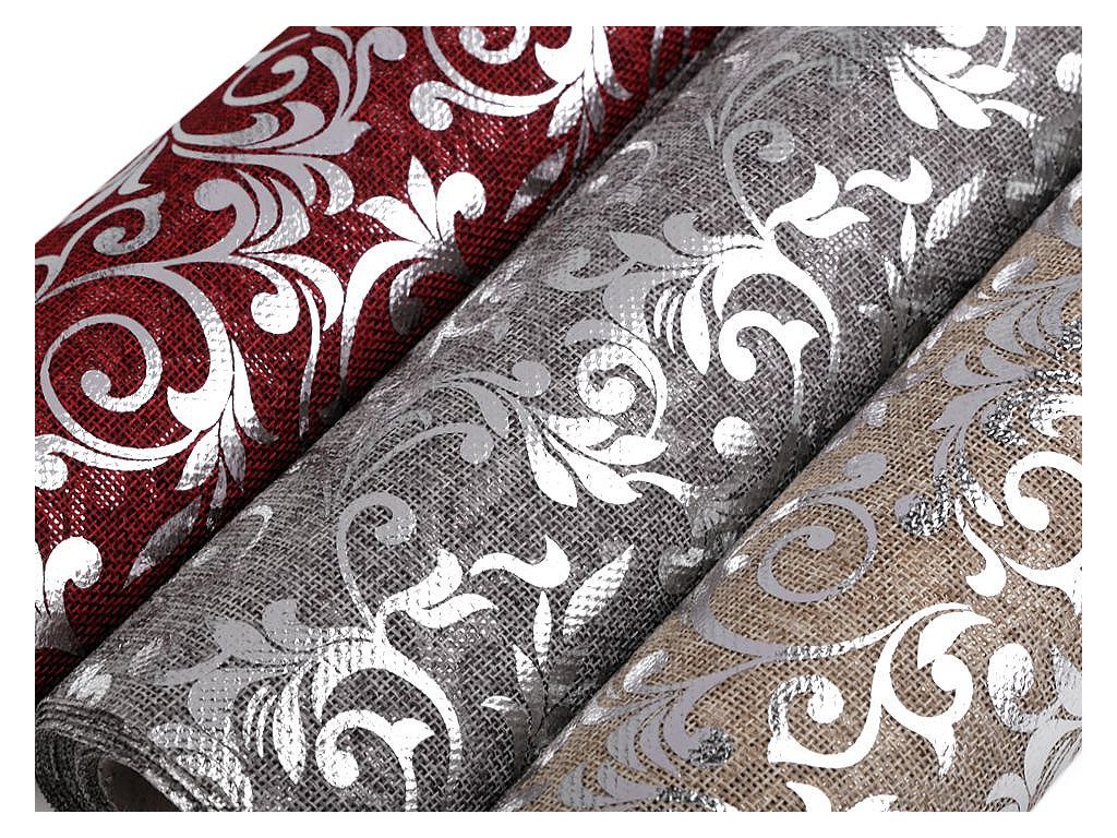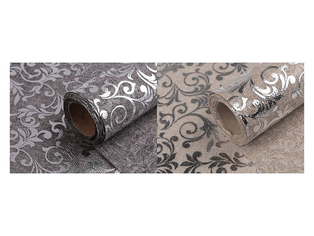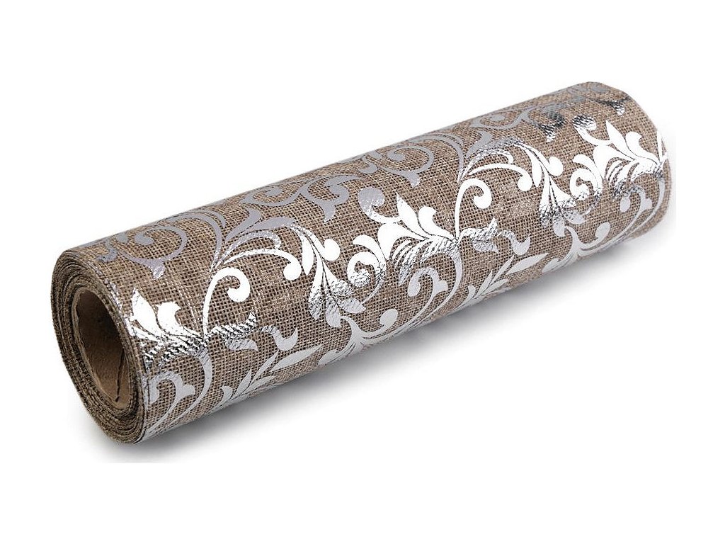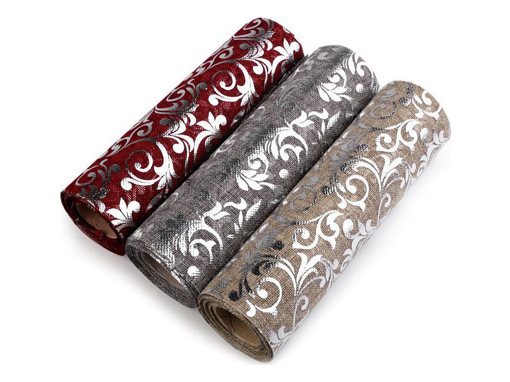 Stuha imitace juty šíře 24 cm ornamenty
