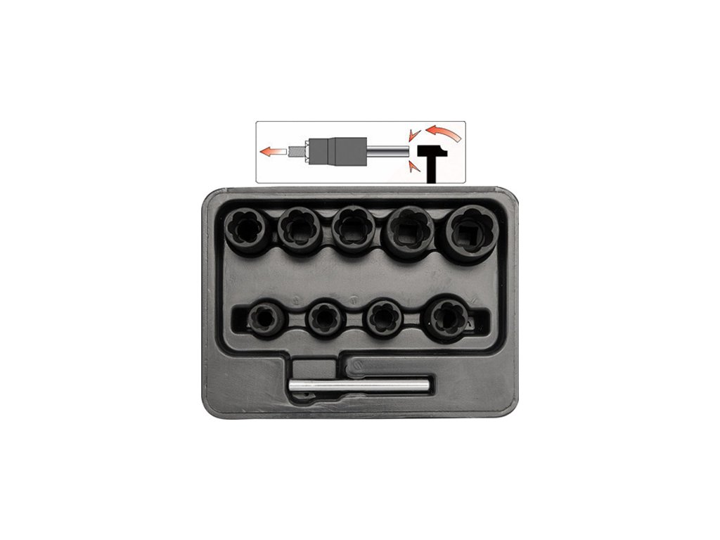 Nástrčné hlavice na poškozené, strojově opracované šrouby, matice ve velikostech 10, 11, 12, 13, 14, 15, 16, 17 a 19 mm mají speciální tvar, který umožňuje jejich zaklínění na poškozený šroub nebo matici, a tím odstranění poškozené části.