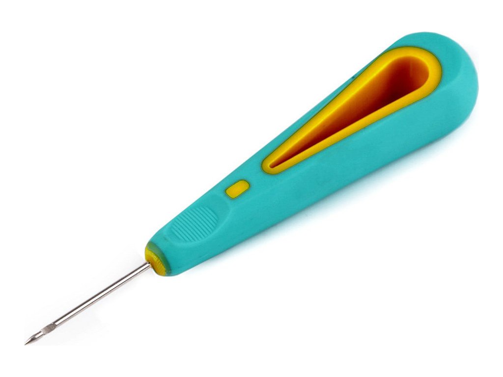 Šídlo s háčkem či dírkou slouží k provlečení nitě. Využijete jej především při práci s kůží a koženkou (na obuv, tašky, batohy, peněženky, opasky). Díky ostré špičce se kůže lehce probodává. Šídlo má plastovou rukojeť, která se dobře drží v ruce. Průměr jehly č. 1 je 1,6 mm. Průměr jehly č. 2 je 2,3 mm.