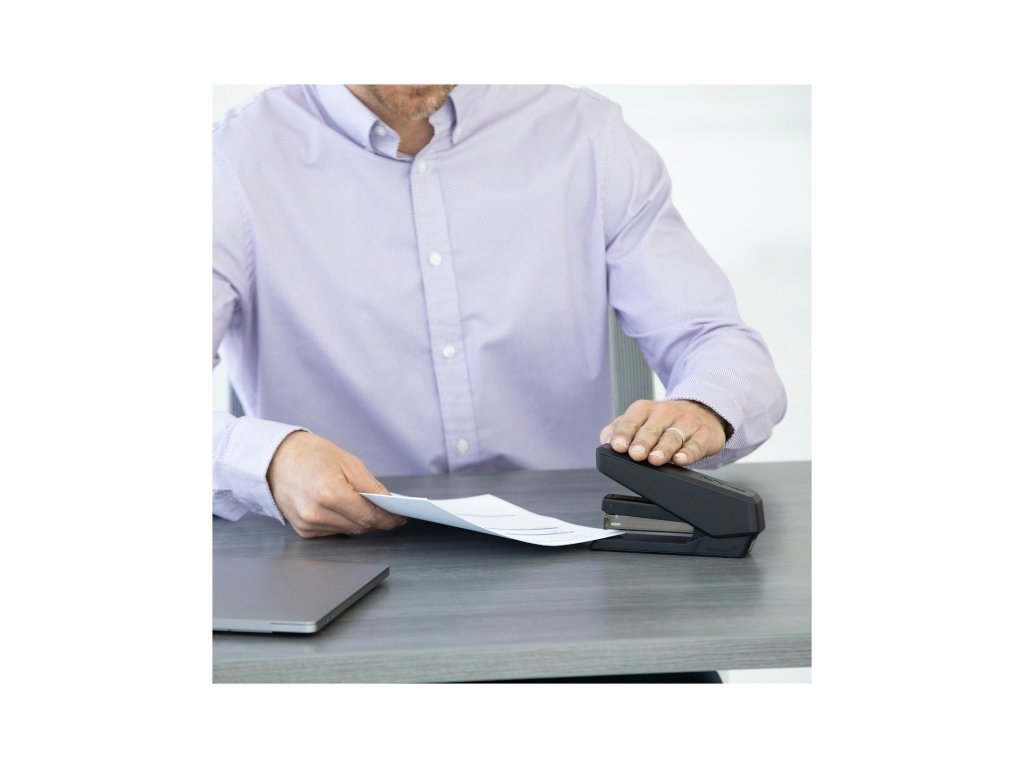 Kancelářská sešívačka na papír LX 850 EasyPress s antimikrobiálním ochranou Microban, která zabraňuje růstu zápachu a bakterií na povrchu. Kapacita sešití až 25 listů 80g papíru lehkým stlačením páky sešívačky. Funkce EasyPress usnadňuje sešívání papíru, zcela bez námahy. Ergonomická, protiskluzová rukojeť usnadňuje proces šití. Rohové pravítko, které ukazuje hloubku stehu a pomáhá s vyrovnáním papíru. Materiál plast/kov Odolná konstrukce umožňuje sešívání bez zaseknutí Pro použití se sponami 24/6 a 26/6. Hmotnost sešívačky 328 g.