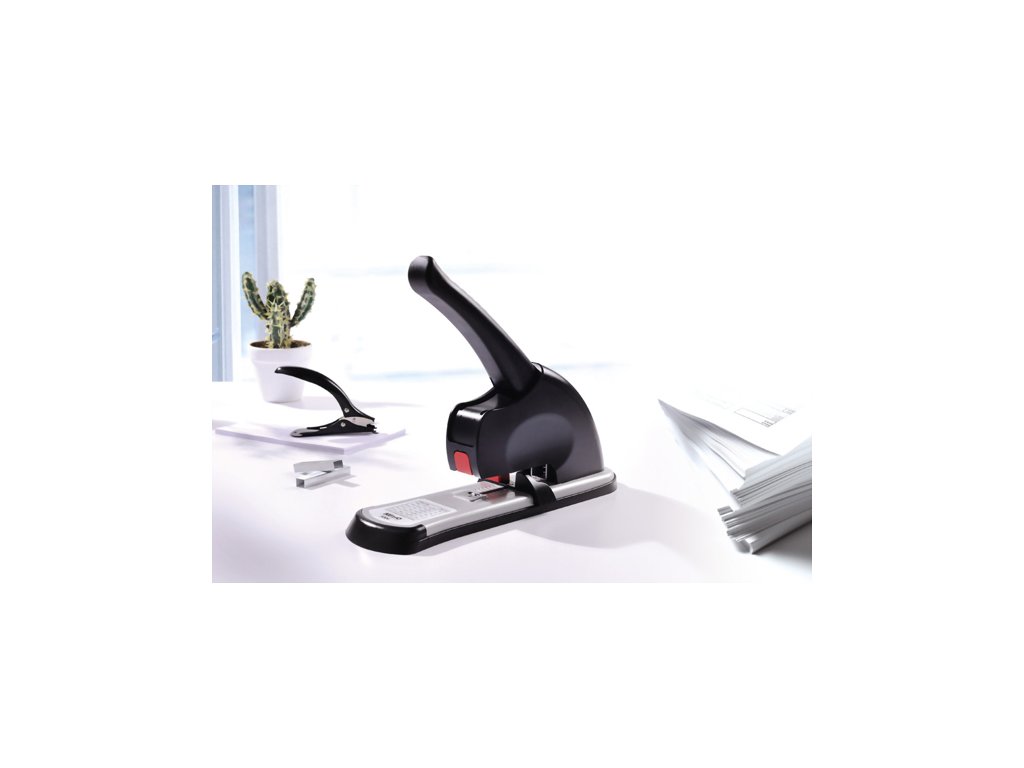 Páková sešívačka s funkcí Effortless hloubka šití 8-70 mm s maximální kapacitou sešití 130 listů papíru přední plnění zásobníku vyrobena z odolného plastu s kovovými komponenty ergonomicky tvarovaná s funkcí effortless, díky které je sešívání snadné s vynaložením až o 40% nižší síly disponuje přehlednou tabulkou vhodných spon pro použití se sponami 23/6 - 23/17