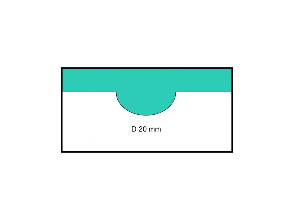 Nástroj má poloměr zaoblení 20 mm a je určený pro všechny