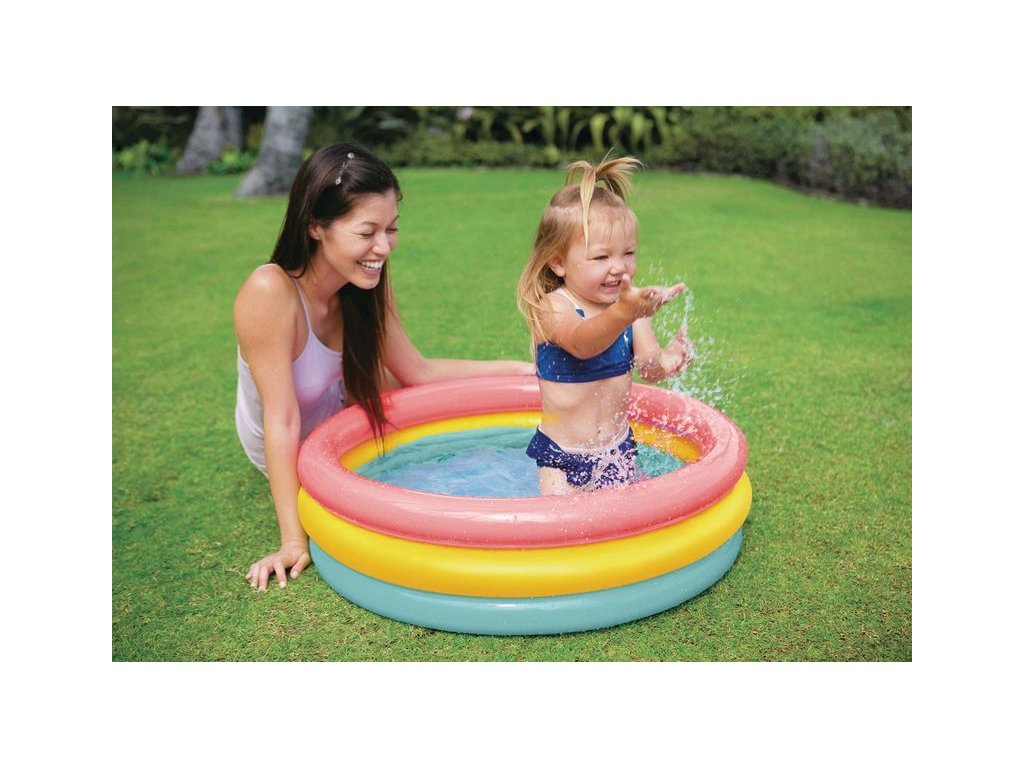 Dětský nafukovací bazének Intex® 58924NP Sunset Glow je ideální pro letní osvěžení a zábavu těch nejmenších. S kompaktními rozměry 86 × 25 cm je vhodný pro použití v zahradě, na terase i na balkoně. Barevný design se zářivými pruhy upoutá pozornost dětí a vytvoří veselou atmosféru.