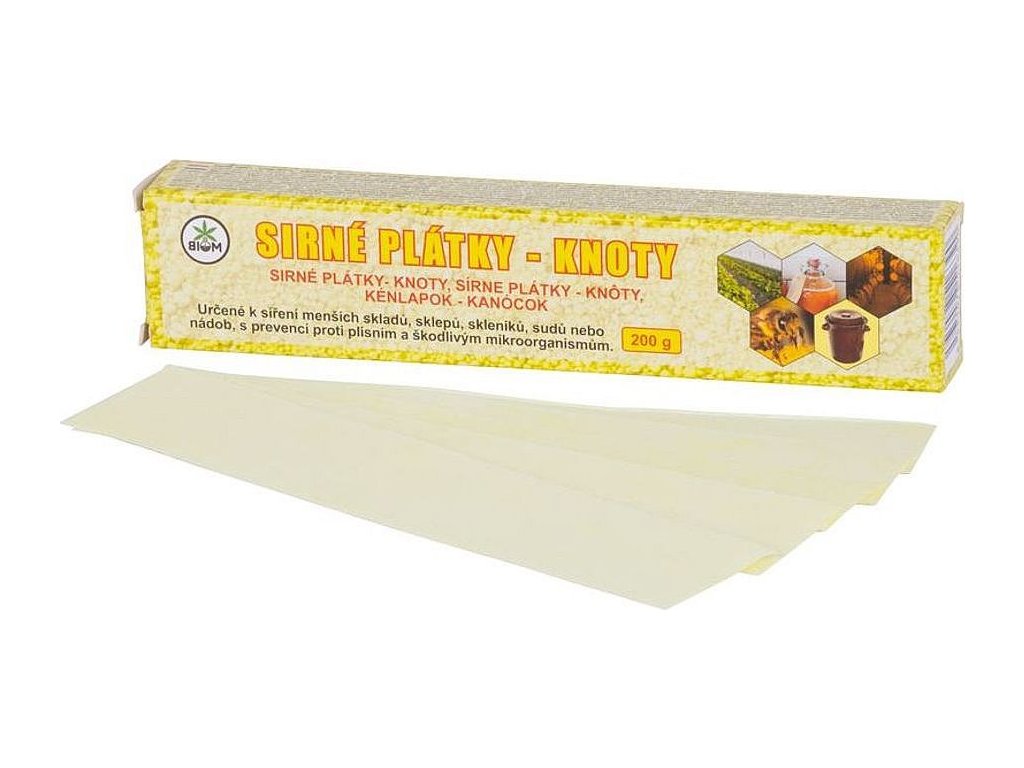 Doporučené aplikování: jeden sirný plátek vystačí na 50 l uzavřeného prostoru (nádoby).