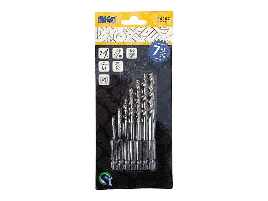 MAGG Vrtáky do kovu HSS sada 7 kusů 1,5-6mm,, šestihranná stopka HEX 1/4