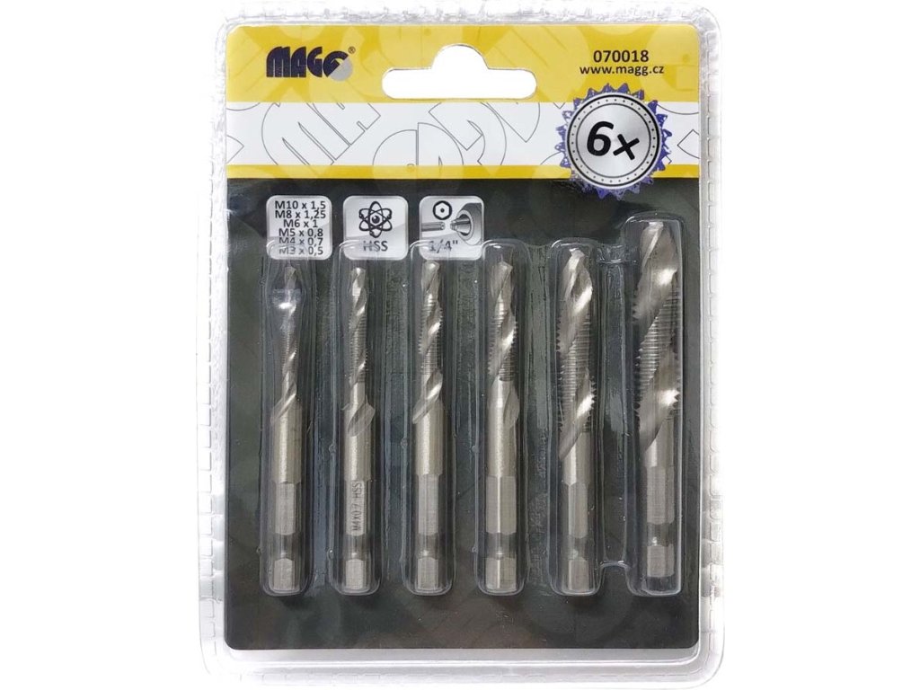 MAGG Závitníky kombinované s vrtákem, sada M3-M10, šestihranná stopka HEX 1/4