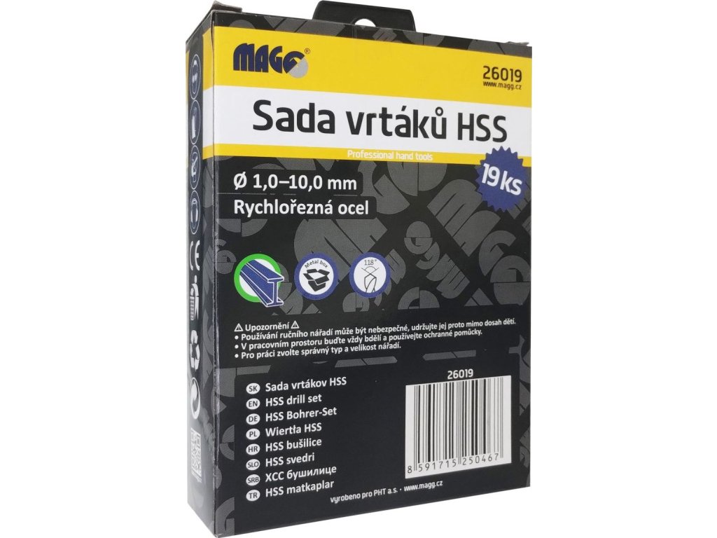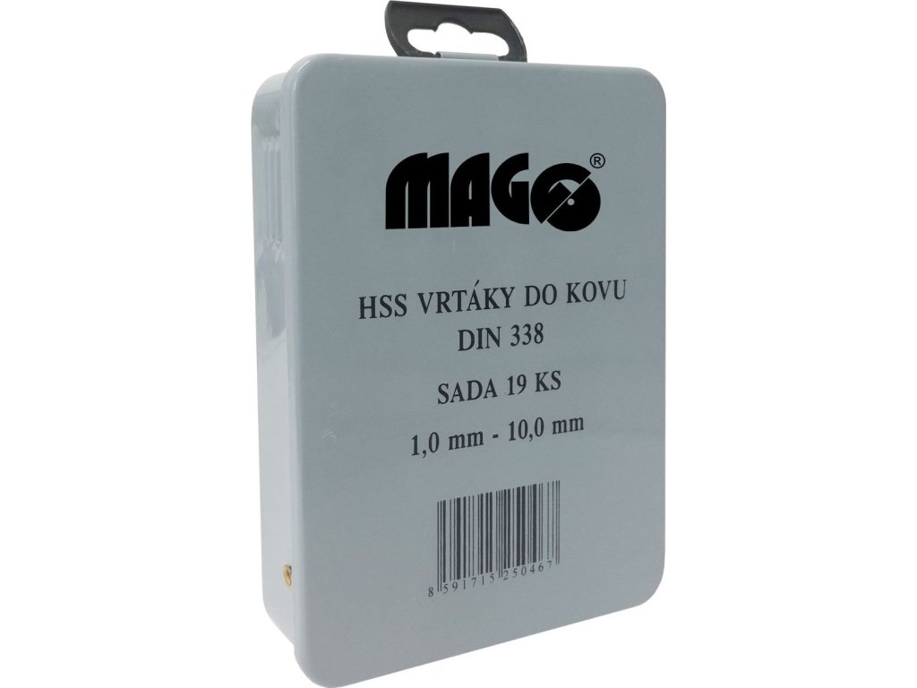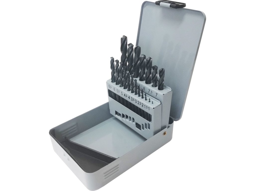 Sada vrtáků HSS 19 ks (1,0-10,0mm), plechový box