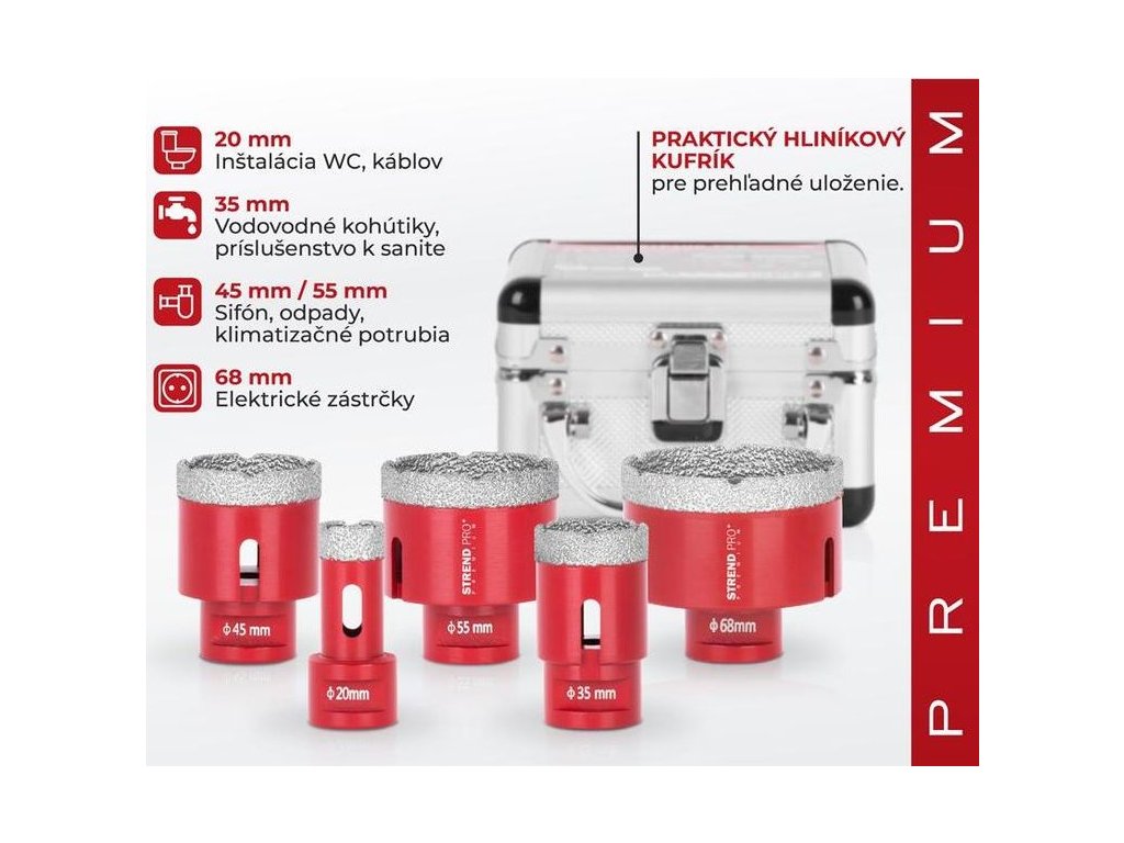 Profi diamantové vykružovací korunky Strend Pro Premium, korunkové vrtáky sada 5ks