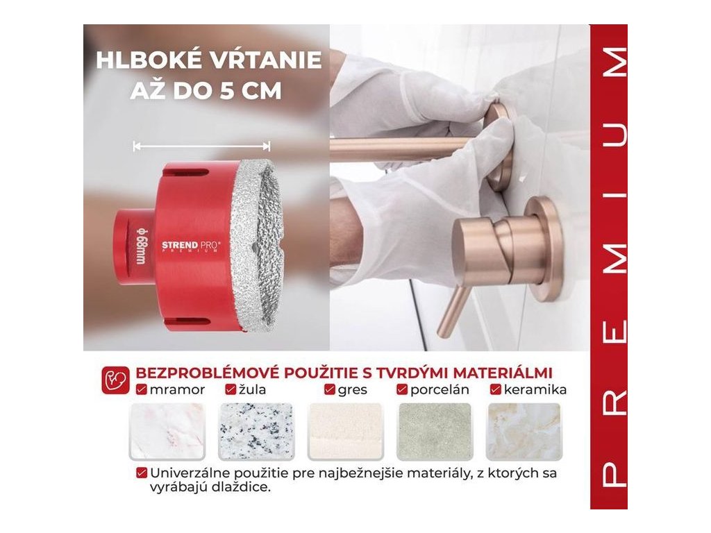 • použití: žula, mramor, obklady, keramika, gres, kámen, beton a další..