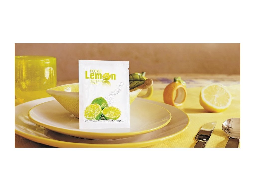 osvěžující vlhčené ubrousky Infibra s vůní citrónů, rozměr 19,5 x 11,5 cm.
