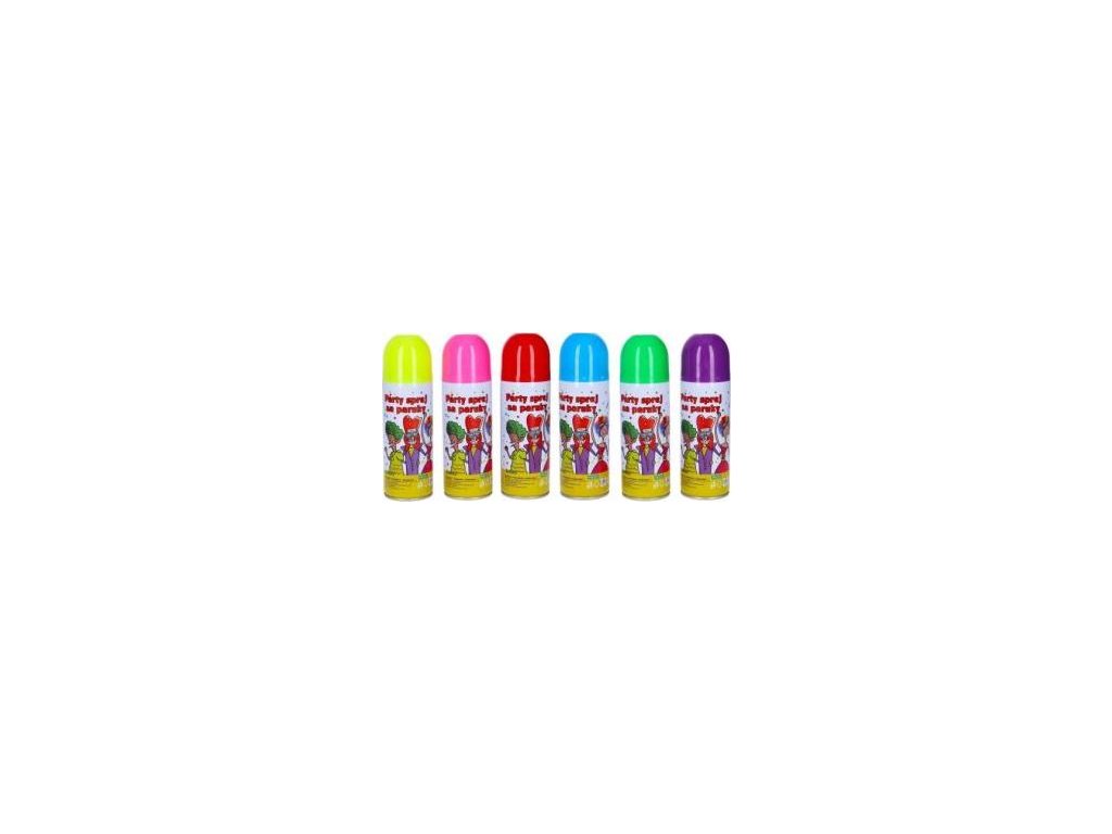 Párty sprej se používá k barvení vlasů a paruk. Sprej je omývatelný běžnými šampony. Před použitím musí mít sprej pokojovou teplotu a musí se důkladně protřepat. Stříkejte ze vzdálenosti 20 cm a umyté vlasy.
