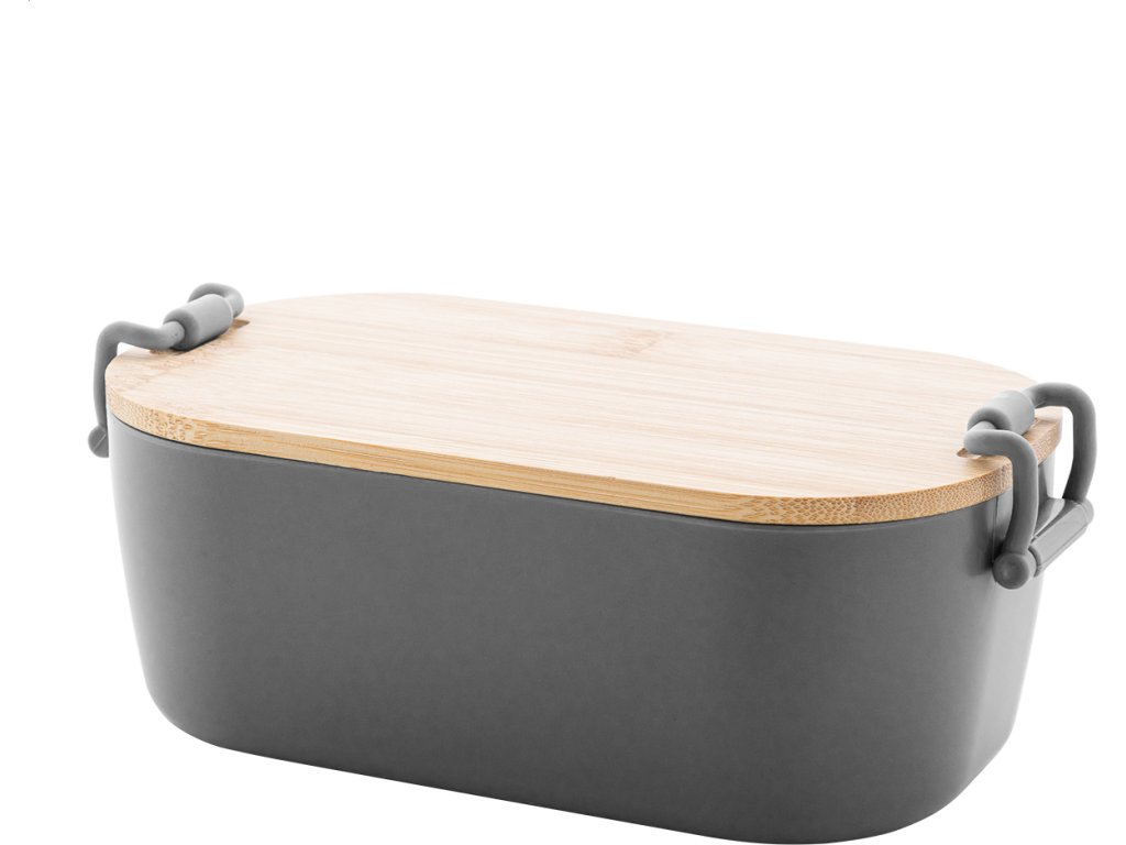 Box na jídlo z PP plastu s bambusovým víkem a uzávěrem na přezku, 1000 ml.