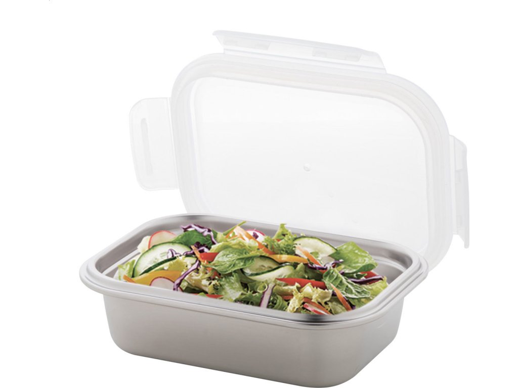 Nerezový box na jídlo se vzduchotěsným uzávěrem z PP plastu, 650 ml.