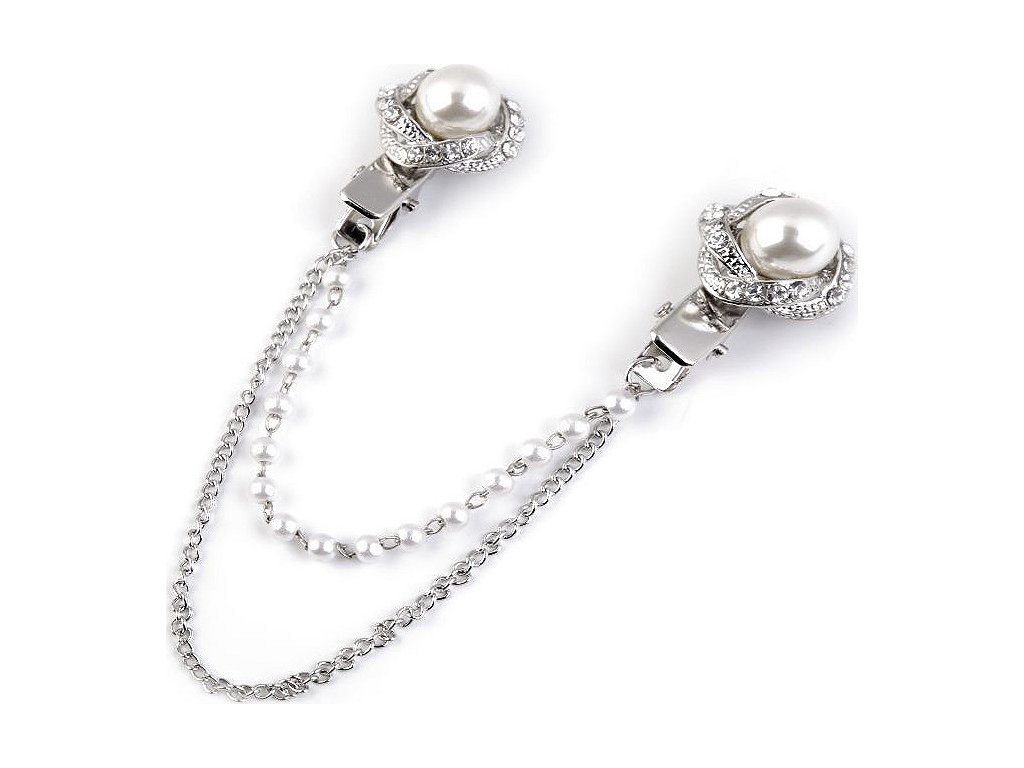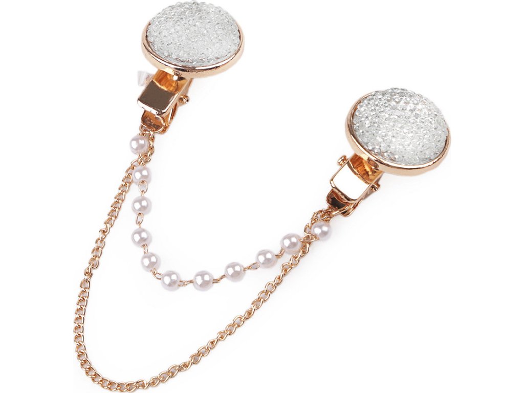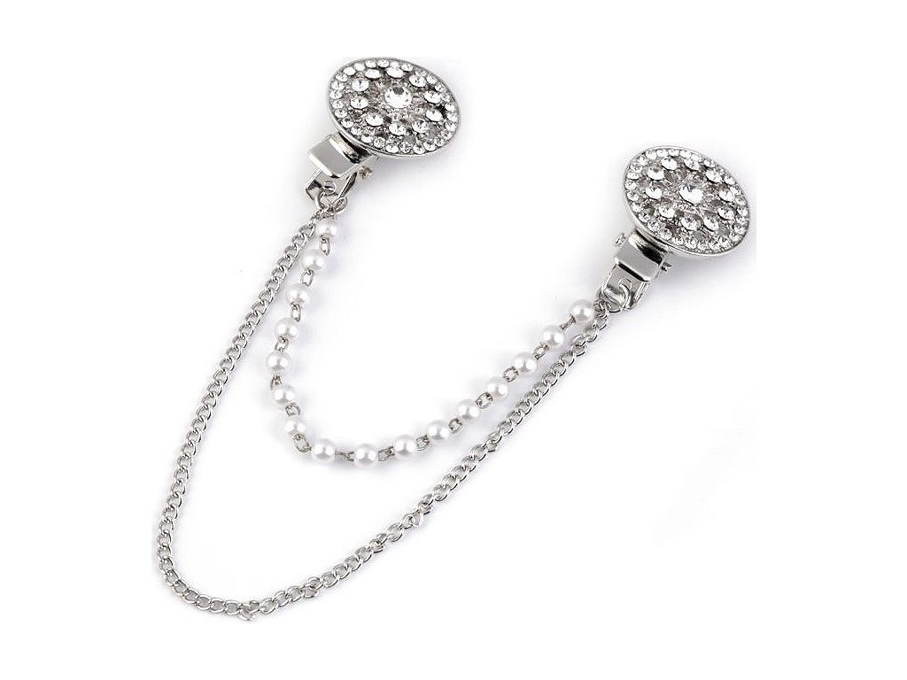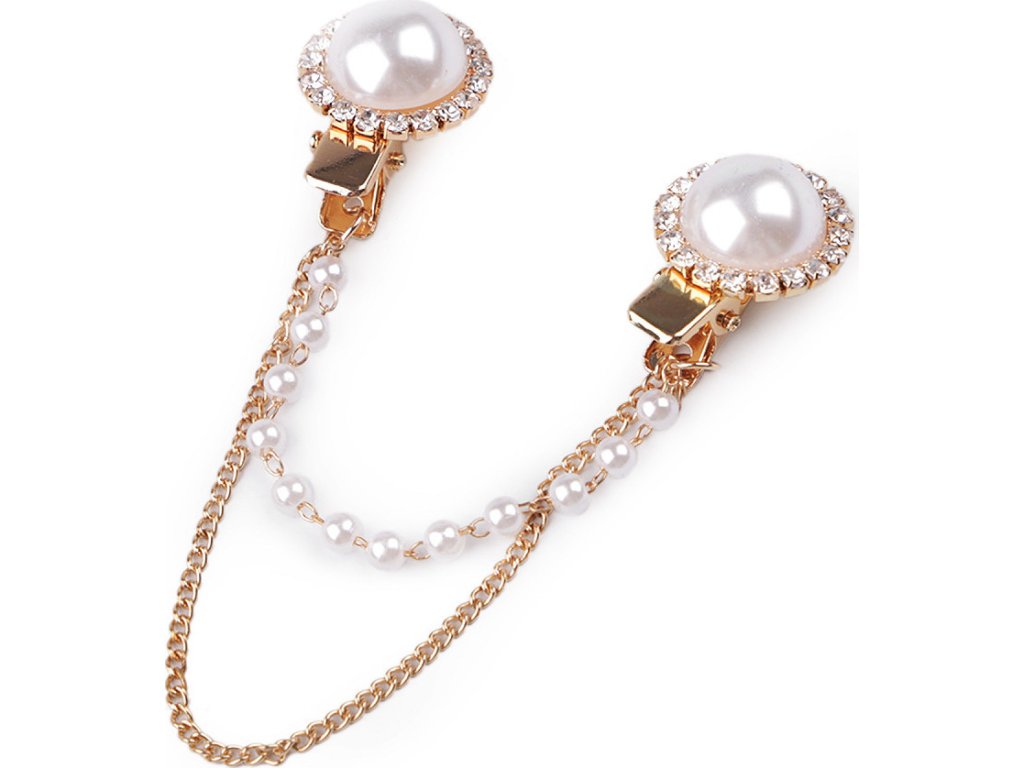 Sponu s řetízky dolaďují broušené kamínky a perly. Oživí každý outfit. Můžete si ji připnout na sako, kabát, košili, halenku i tašku.
