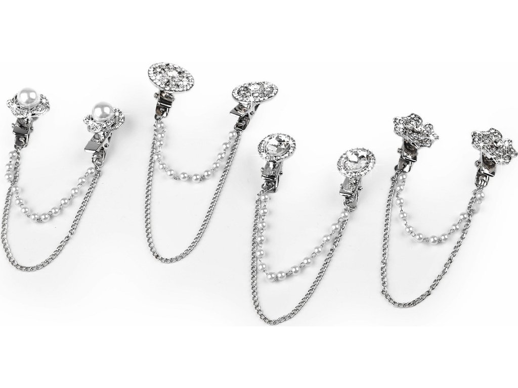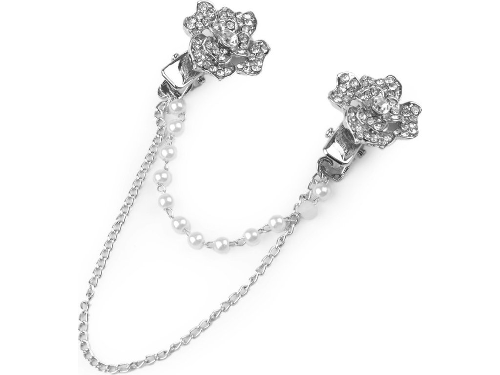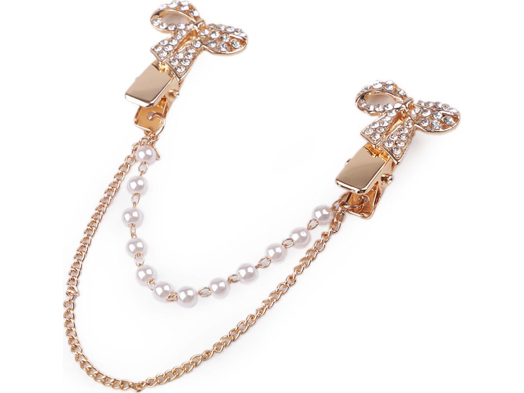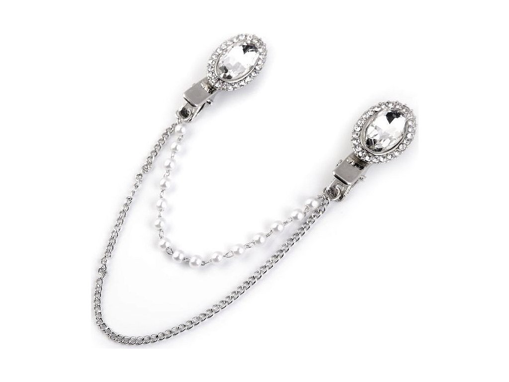 Sponu s řetízky dolaďují broušené kamínky a perly. Oživí každý outfit. Můžete si ji připnout na sako, kabát, košili, halenku i tašku.