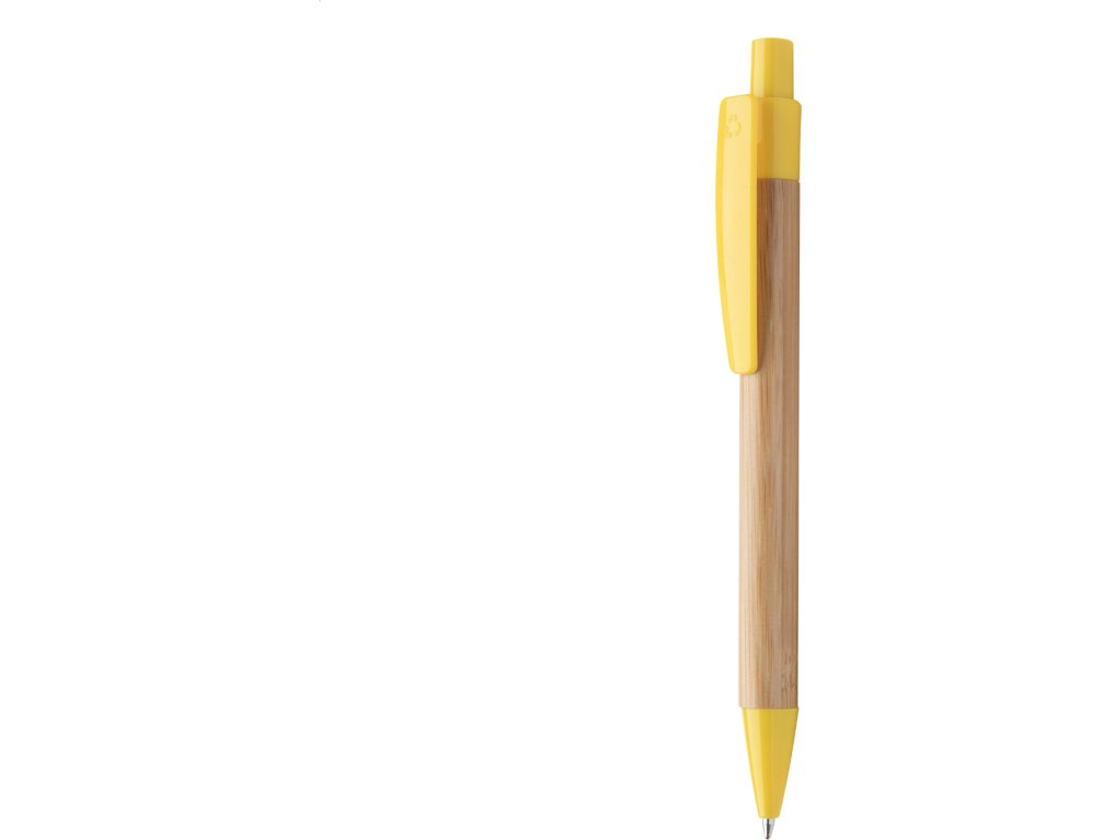 Kuličkové pero z bambusu s barevným plastovým klipem a špičkou, s modrou náplní.