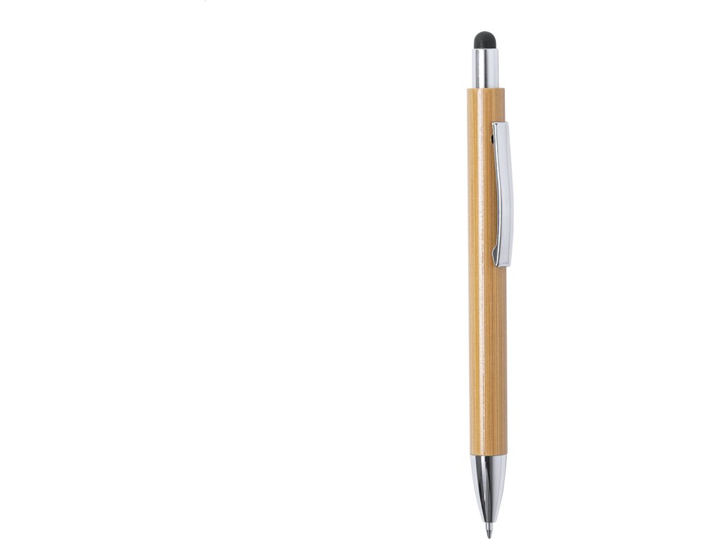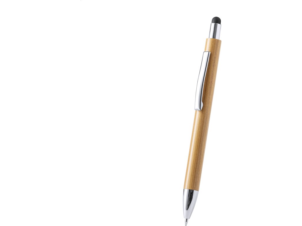 Bambusové dotykové a kuličkové pero s kovovým klipem a špičkou, s modrou náplní.