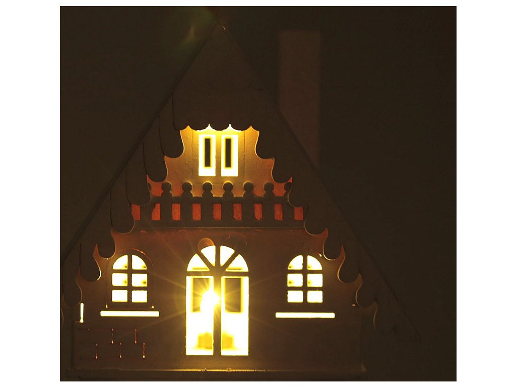 Dřevěný svítící domeček vnese pohodovou atmosféru do každého domova. Jeho poutavě zpracované detaily a teplé světlo vytváří nádherný vizuální efekt, který okouzlí každého. Díky poutku jej lze pověsit na stromeček nebo vánoční aranžmá. Baterie jsou součástí balení (3x LR1130).