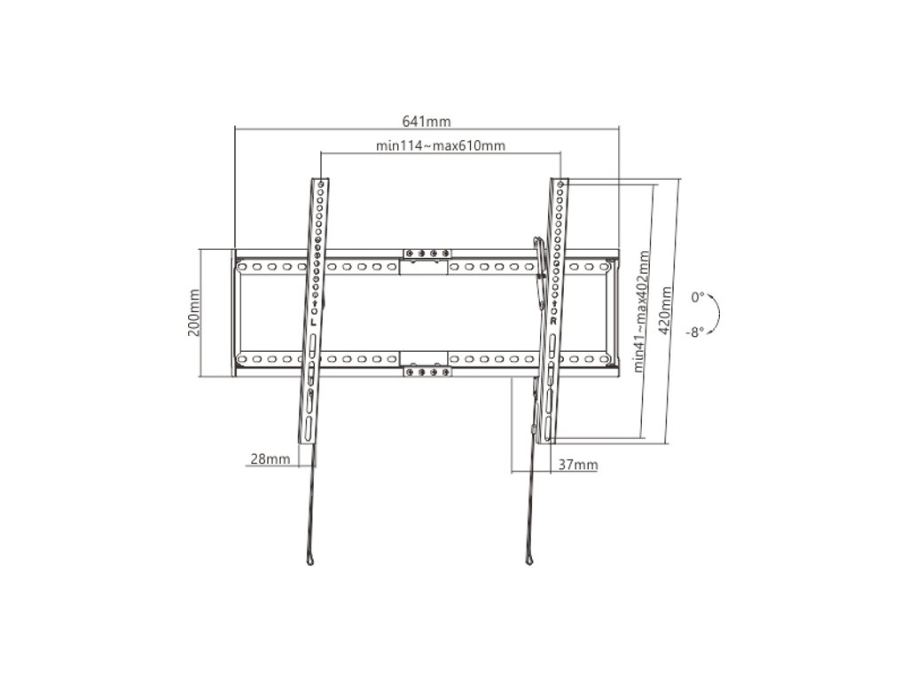 • Volně sklopitelná konstrukce pro jednoduchou změnu náklonu TV v úhlu 0°~-8°