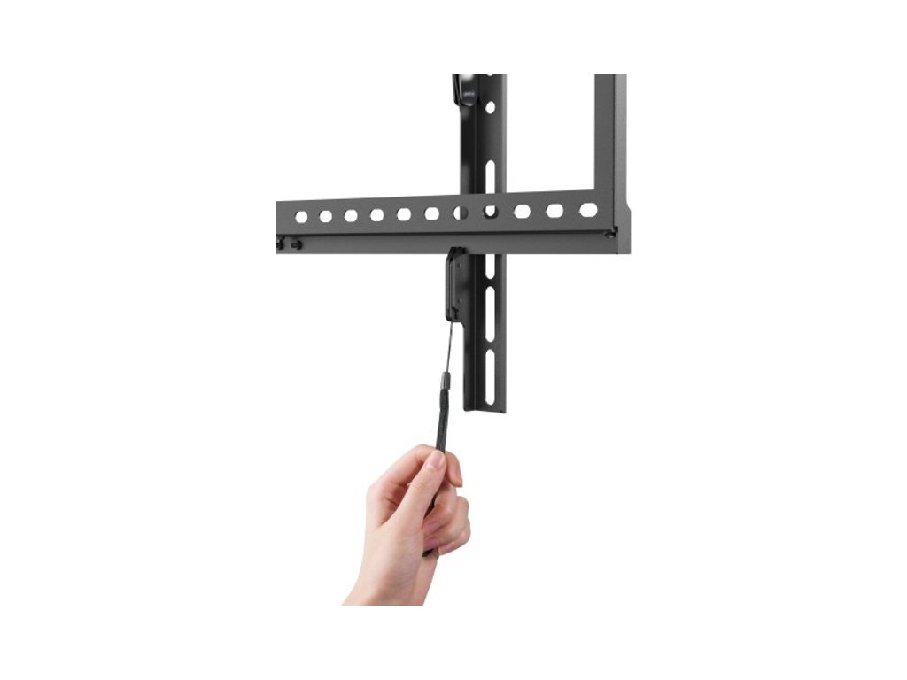 Nástěnný pro instalaci TV s plochou i zakřivenou obrazovkou s úhlopříčkami od 37“ do 80“ a hmotností až do 75 kg. Držák má otevřenou konstrukci, naklápěcí systém držáku umožňuje snadné nastavení pozorovacího úhlu.