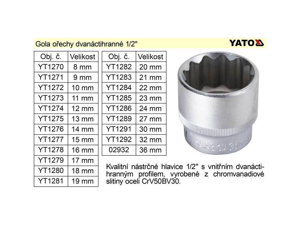 • Gola ořech dvanáctihran 36mm 1/2"