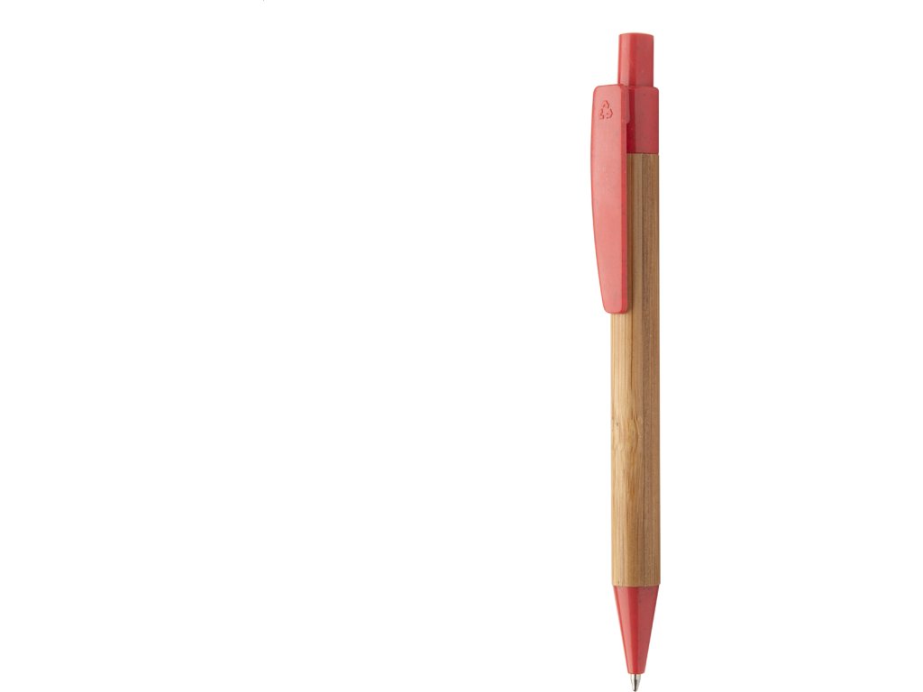 Kuličkové pero z bambusu s klipem a špičkou ze slámy, s modrou náplní.
