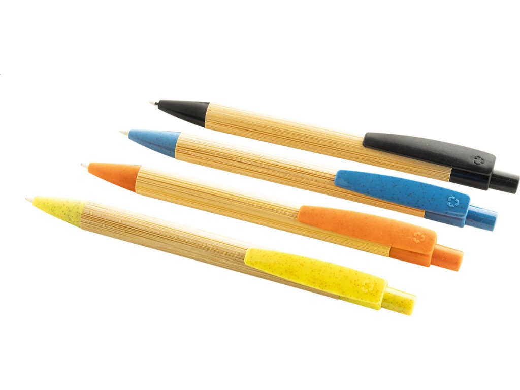 Kuličkové pero z bambusu s klipem a špičkou ze slámy, s modrou náplní.