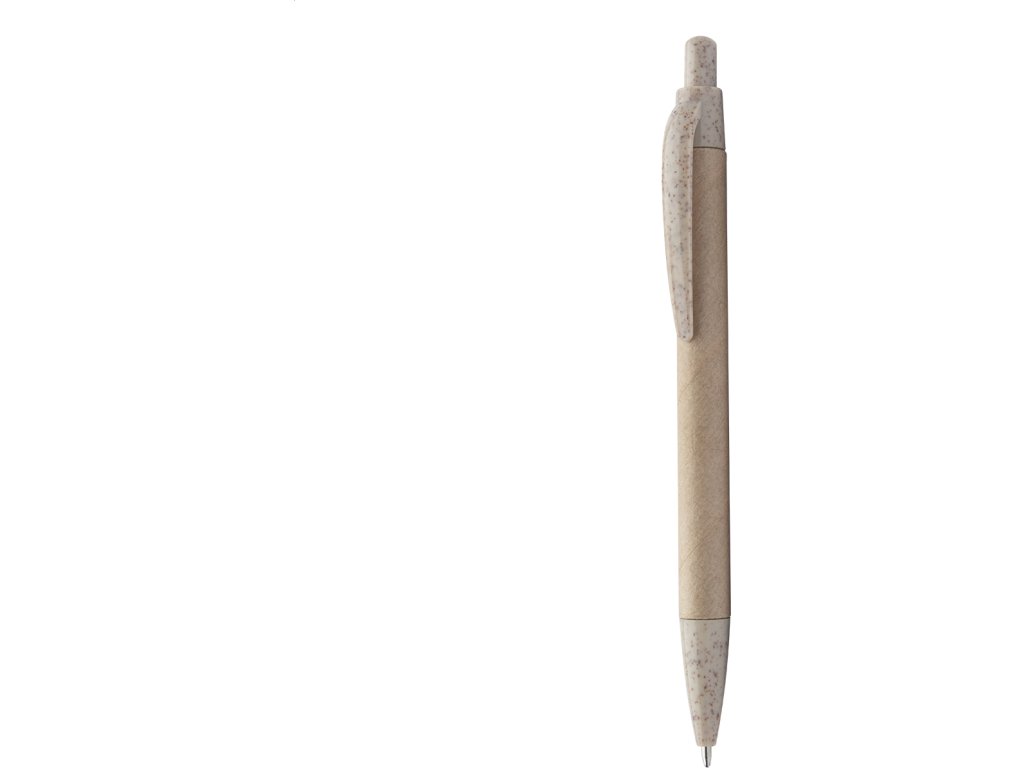 Kuličkové pero z recyklovaného papíru s ekologickými plastovými částmi z pšeničných stébel, s modrou náplní.