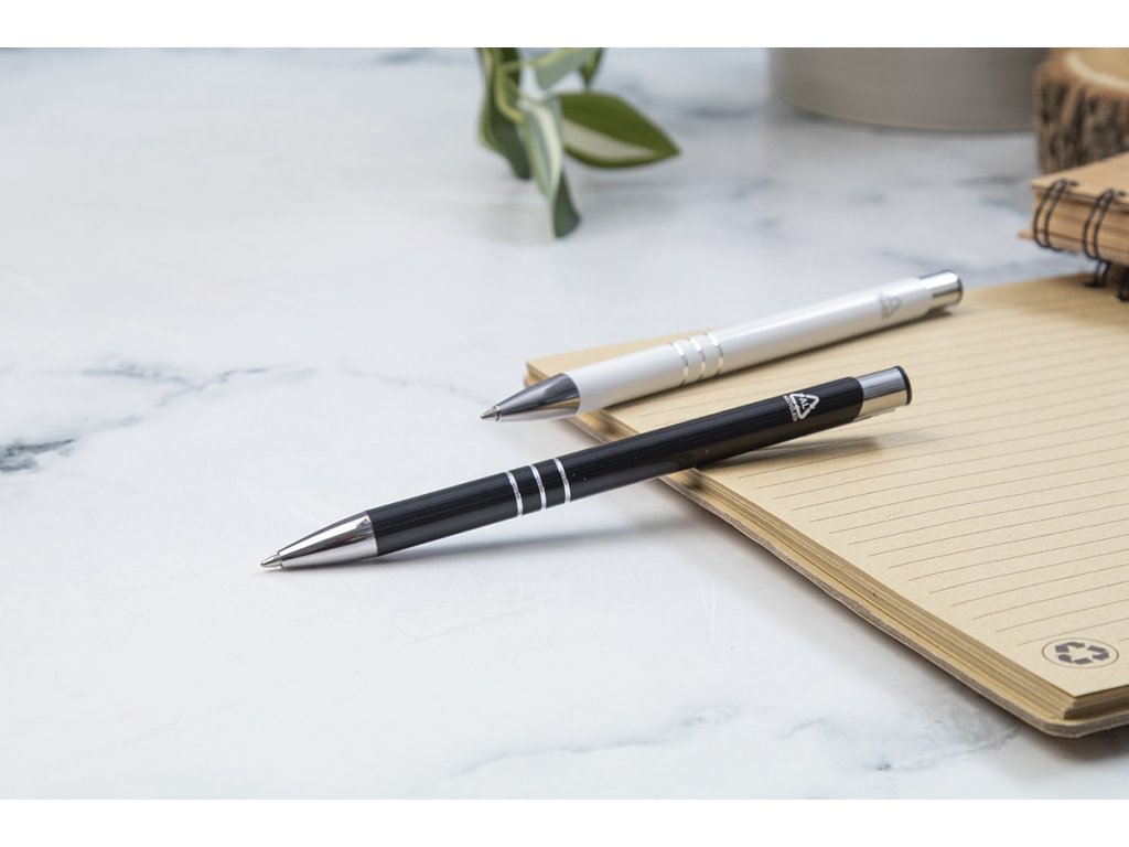 Kuličkové pero z recyklovaného hliníku s modrou náplní.
