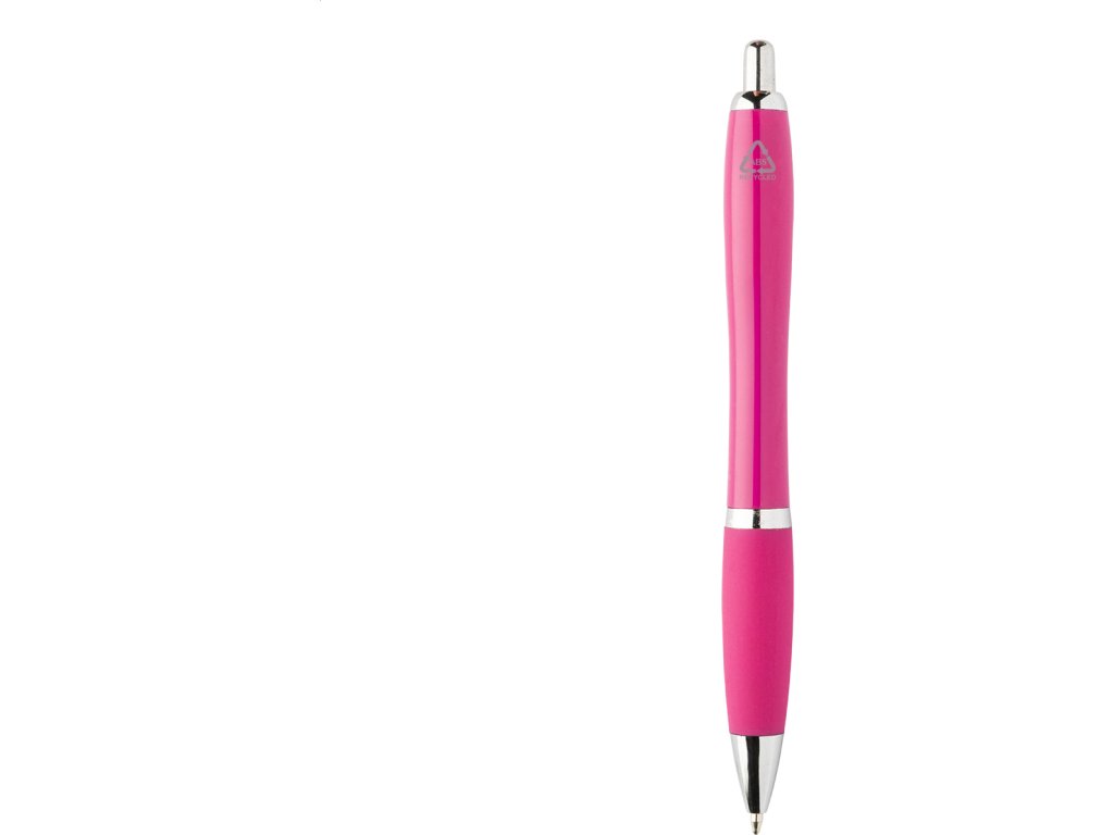 Kuličkové pero z recyklovaného ABS plastu s úchopem v odpovídající barvě a chromovanými částmi. S modrou náplní.