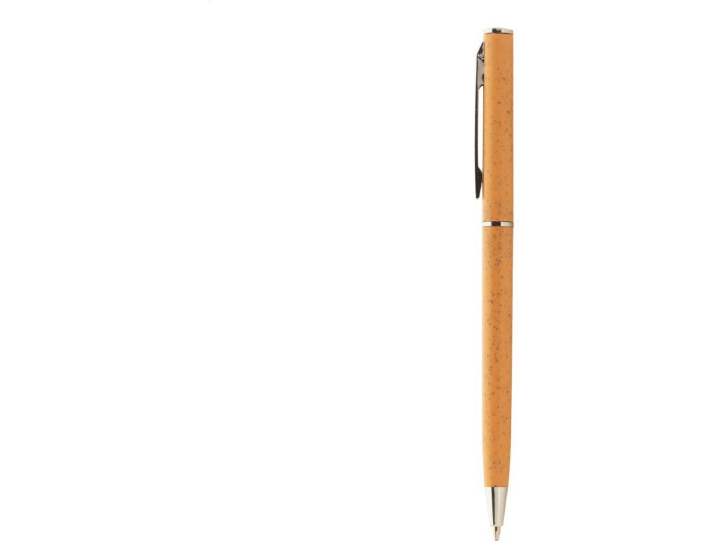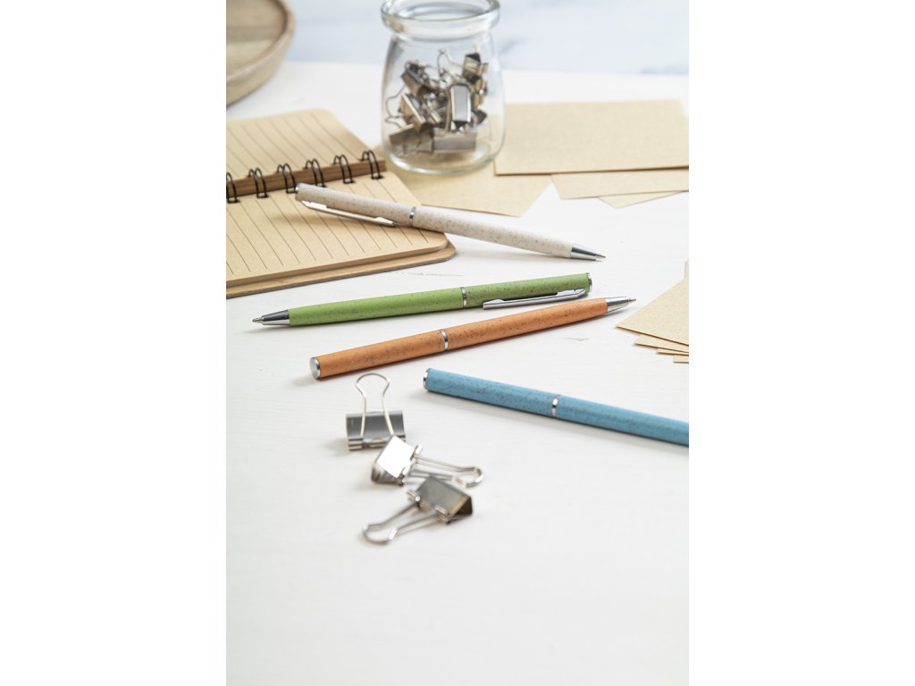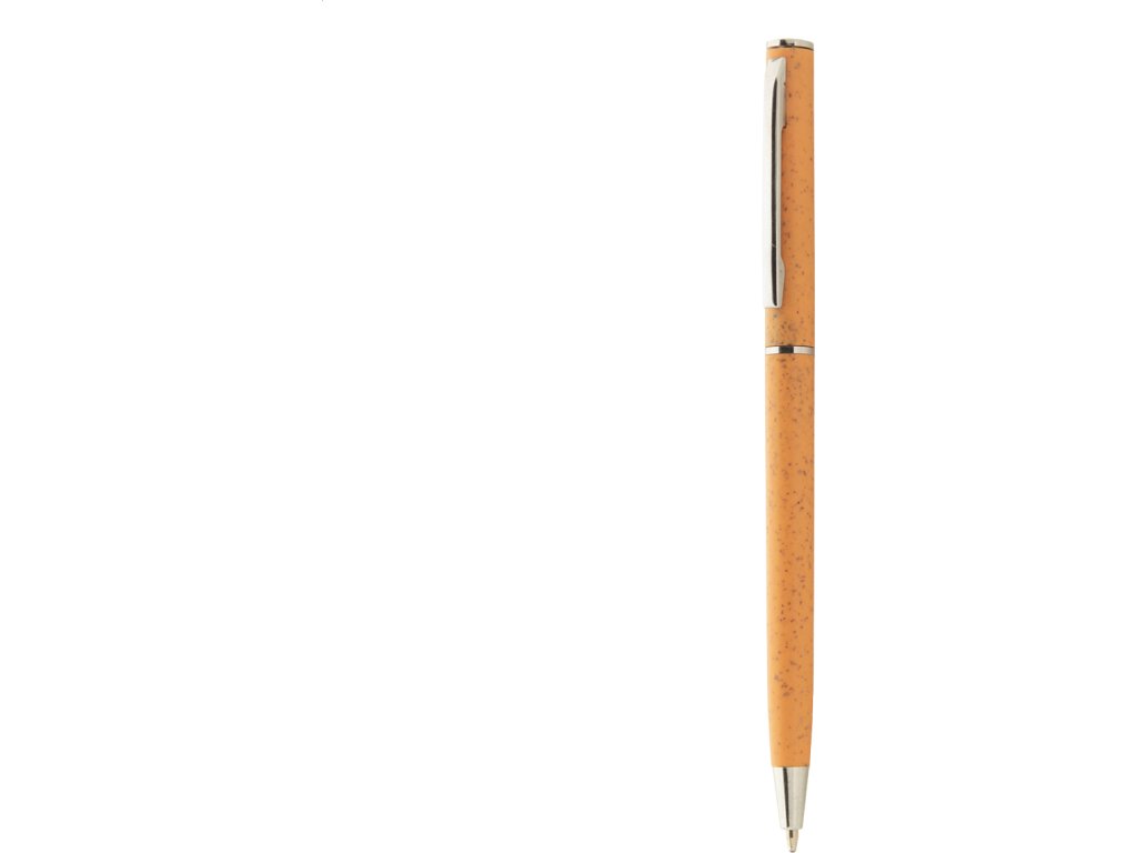 Ekologické plastové kuličkové pero z pšeničné slámy s chromovými detaily. S modrou náplní.