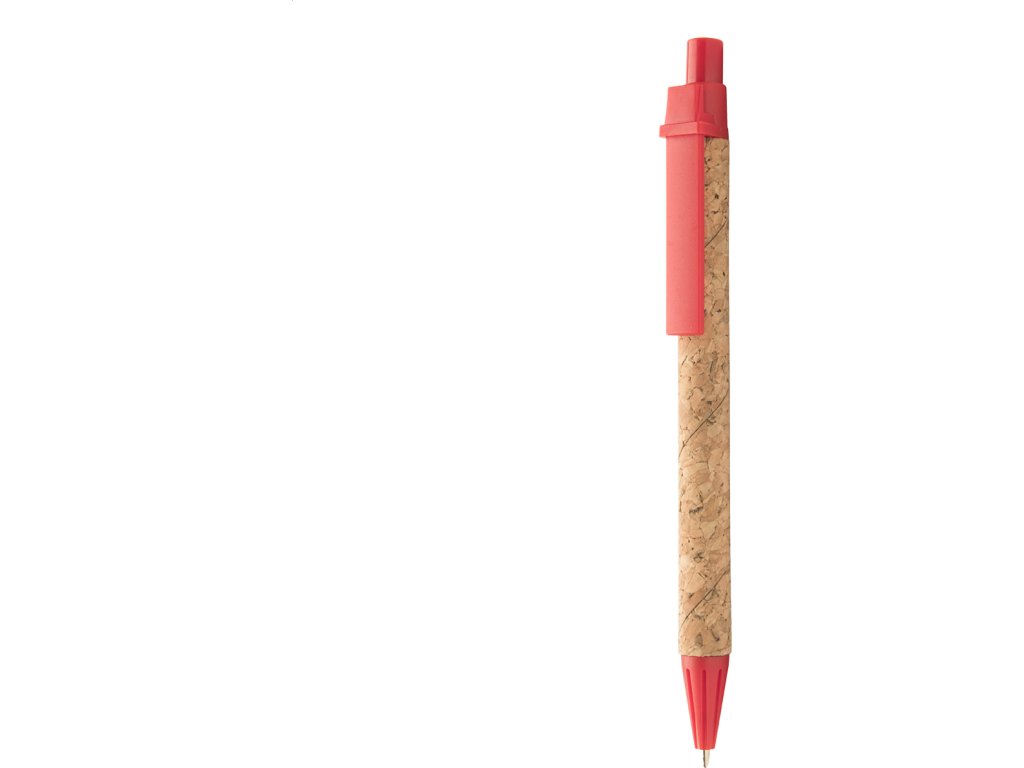 Kuličkové pero z recyklovaného papíru s korkovým povrchem a plastovými částmi, s modrou náplní.