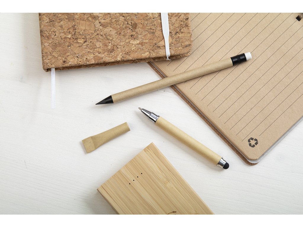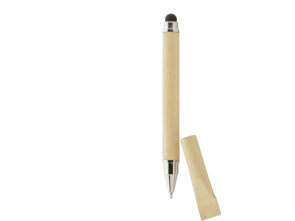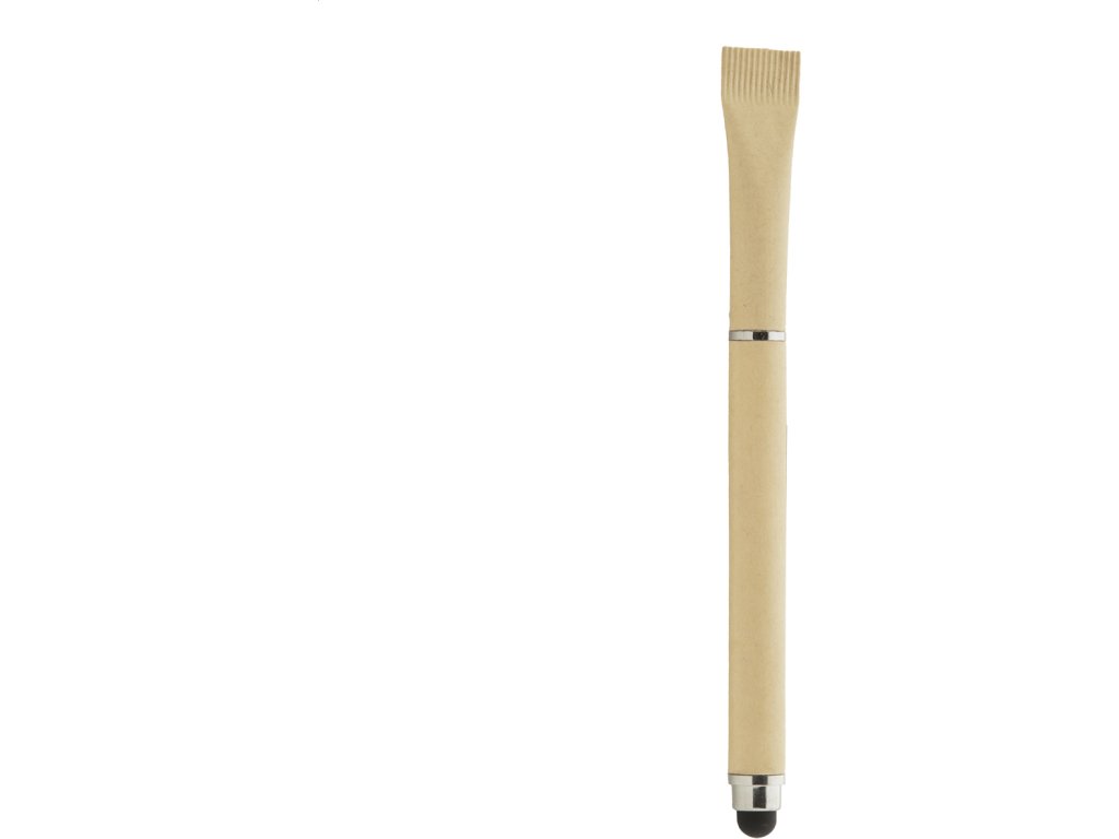 Kuličkové pero z recyklovaného papíru a dotykové pero s odpovídající barevnou krytkou. S modrou náplní.