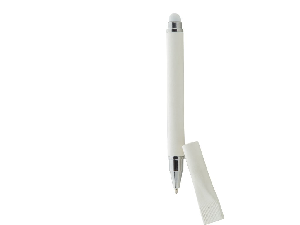 Kuličkové pero z recyklovaného papíru a dotykové pero s odpovídající barevnou krytkou. S modrou náplní.