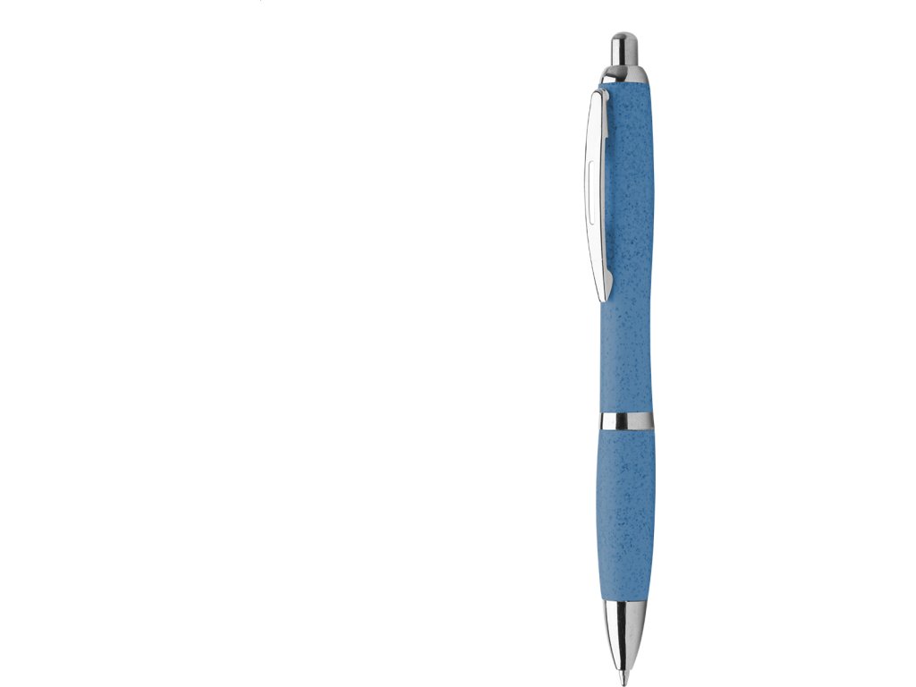 Kuličkové pero s chomovanými detaily a s ekologickými plastovými částmi z pšeničných stébel, s modrou náplní.