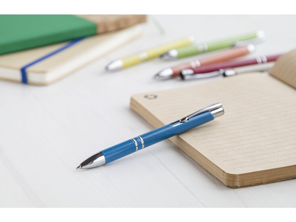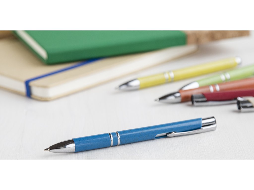 Kuličkové plastové pero z ekologických částí z pšeničných stébel, s modrou náplní.