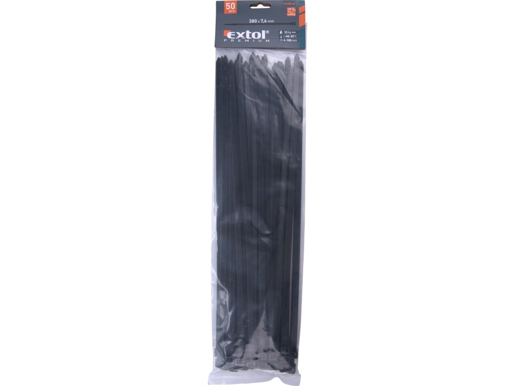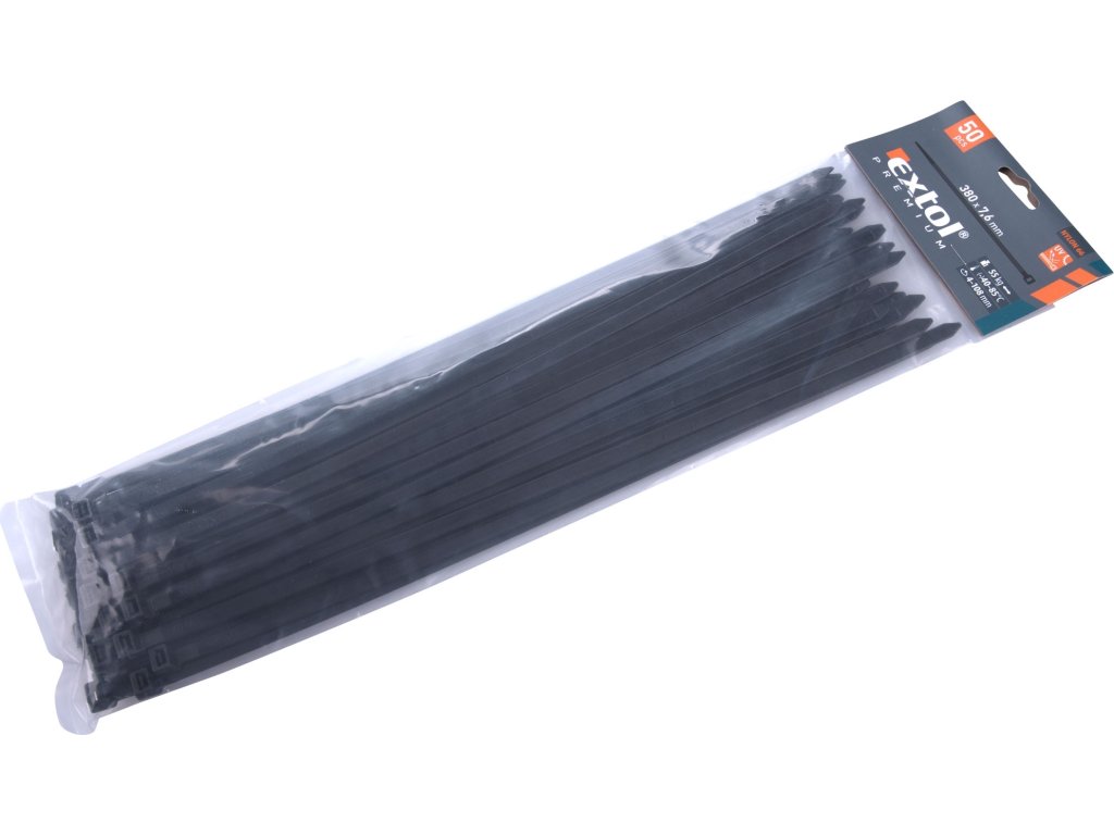 pásky stahovací na kabely černé, 380x7,6mm, 50ks, nylon PA66