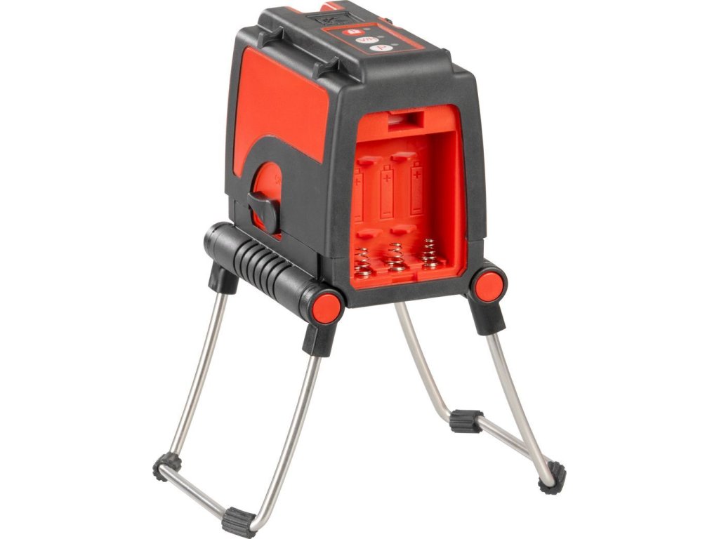 Laser projektuje 1 horizontální a 2 vertikální paprsky se dvěma 90° průsečíky.