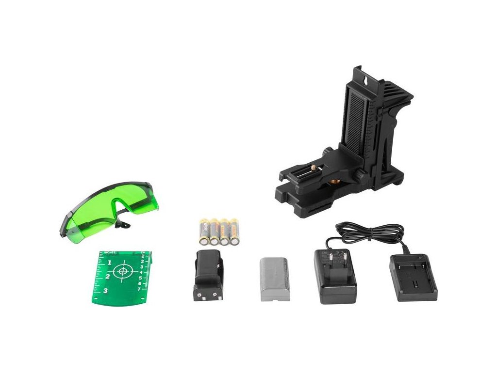 K dispozícii je manuálny režim, ktorý je vhodný pre prácu v akomkoľvek sklone. Laser automaticky určuje horizontálnu a vertikálnu polohu. Emituje 1 horizontálny 360° a 2 kolmé vertikálne 360° lúče pretínajúce sa na 4 stenách, podlahe a strope. Samonivelácia v automatickom režime nastáva v rozmedzí ±2,5°. Pri prekročení samonivelačného rozmedzia dochádza k blikaniu lúčov lasera. Ak je laser nerovne upevnený, vyšle vizuálne a zvukové upozornenie. Maximálny vnútorný dosah lasera predstavuje 30 metrov. Maximálny detekčný dosah pulzov je 70 metrov. Laser je vybavený uzamykacím mechanizmom, ktorý chráni výkyvnú jednotku počas prepravy.